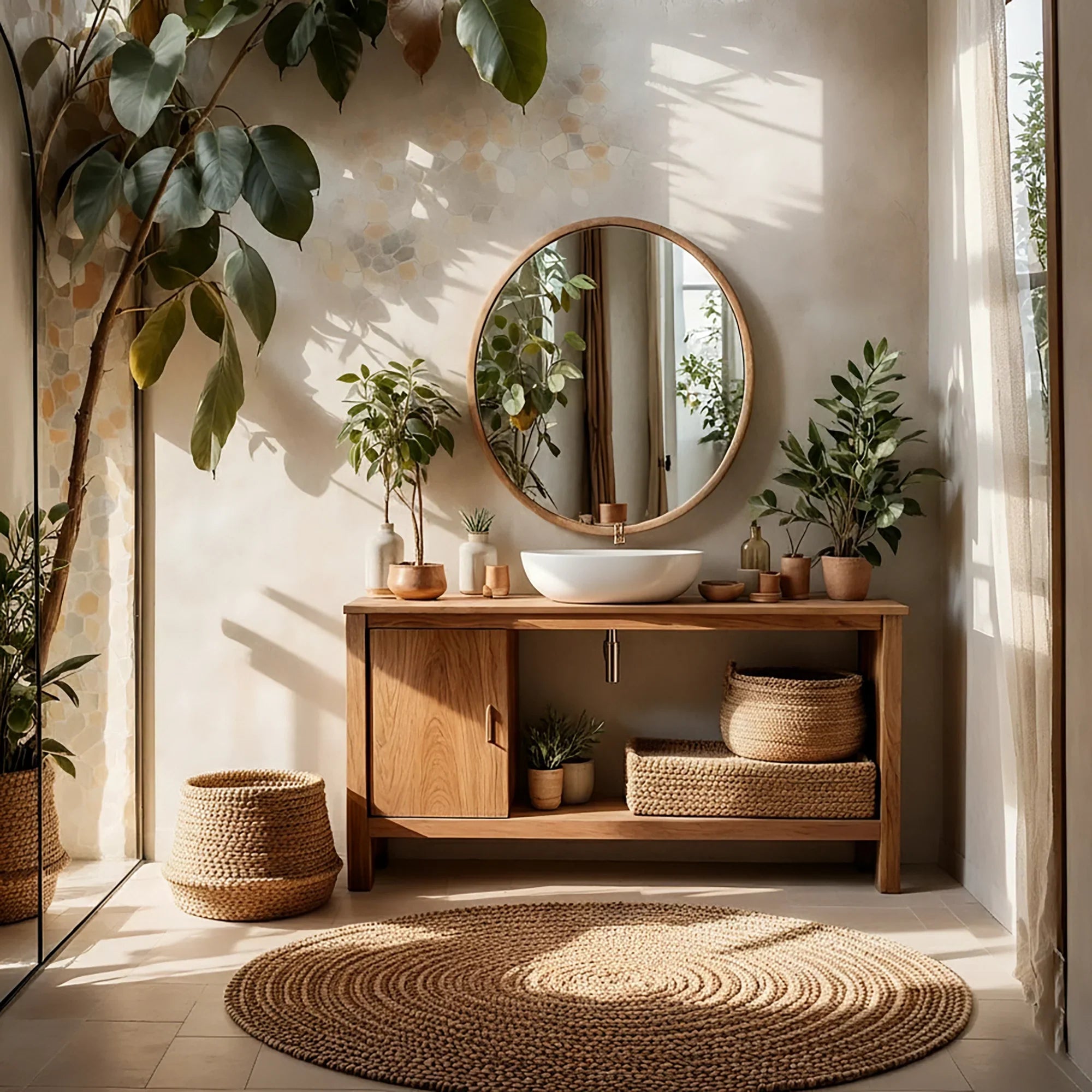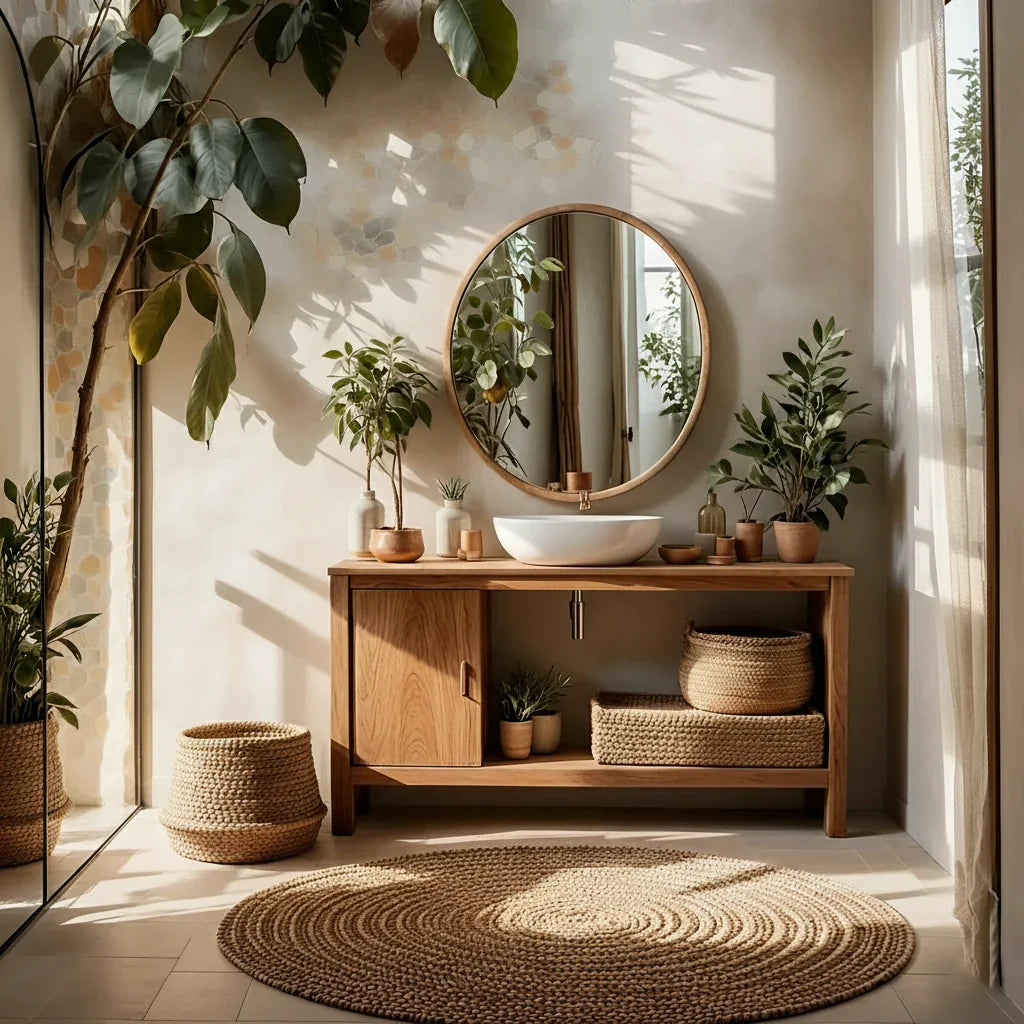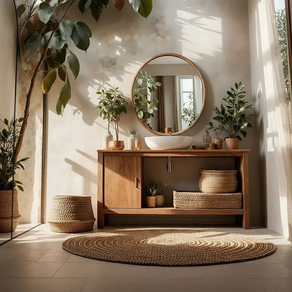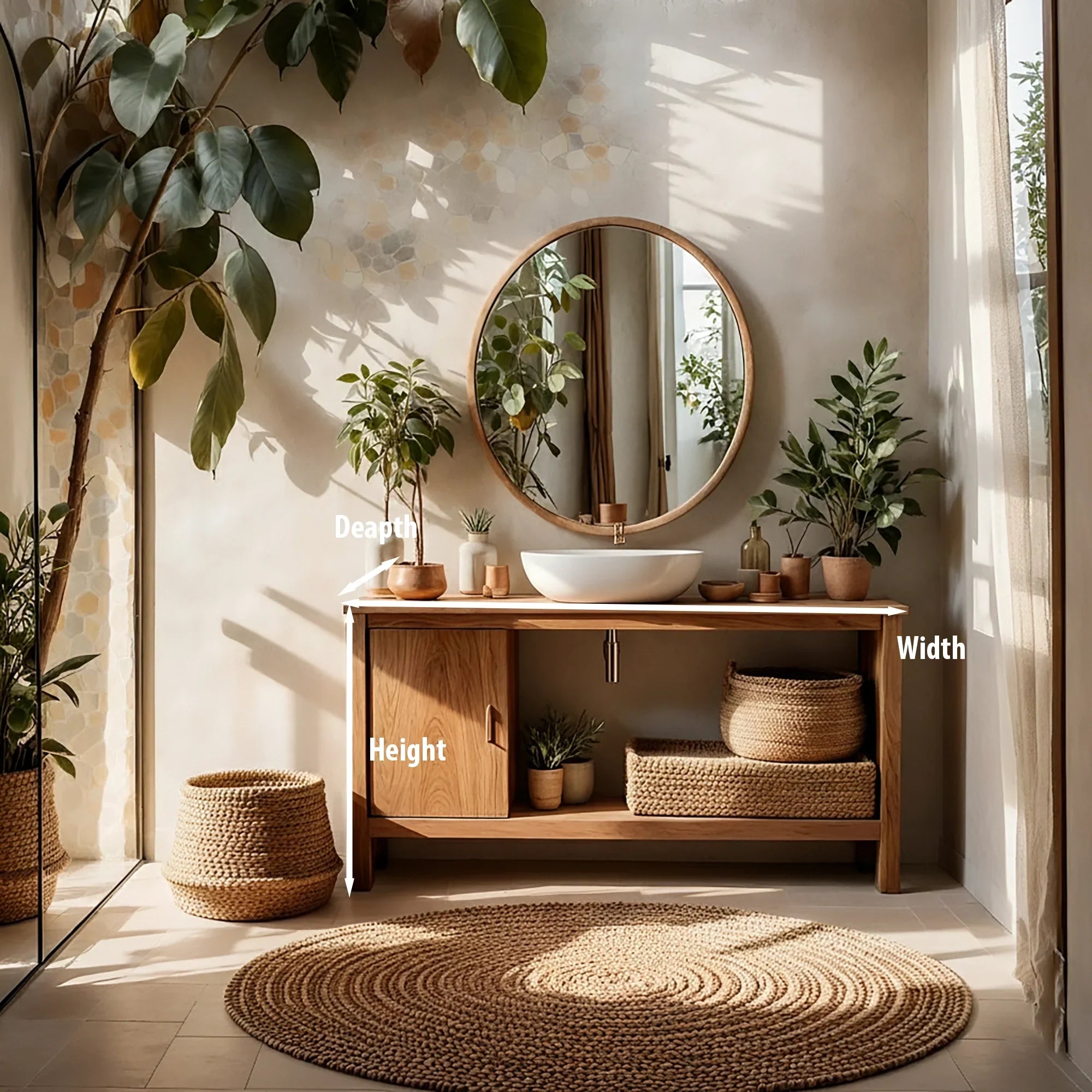 Calm, bright, and beautifully functional, this minimal solid wood bathroom vanity is designed to bring warm simplicity to modern interiors. Its clean-lined silhouette keeps the room feeling open, while the generous wood countertop provides a refined surface for a vessel sink and everyday essentials. With balanced proportions and quiet detailing, it fits effortlessly into organic modern bathrooms, Japandi-inspired spaces, and spa-like powder rooms.