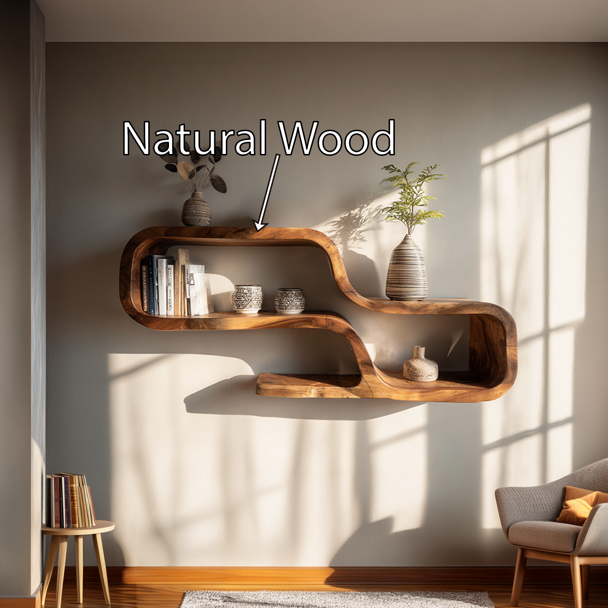 Organic Solid Wood Curved Floating Shelf for Living Room