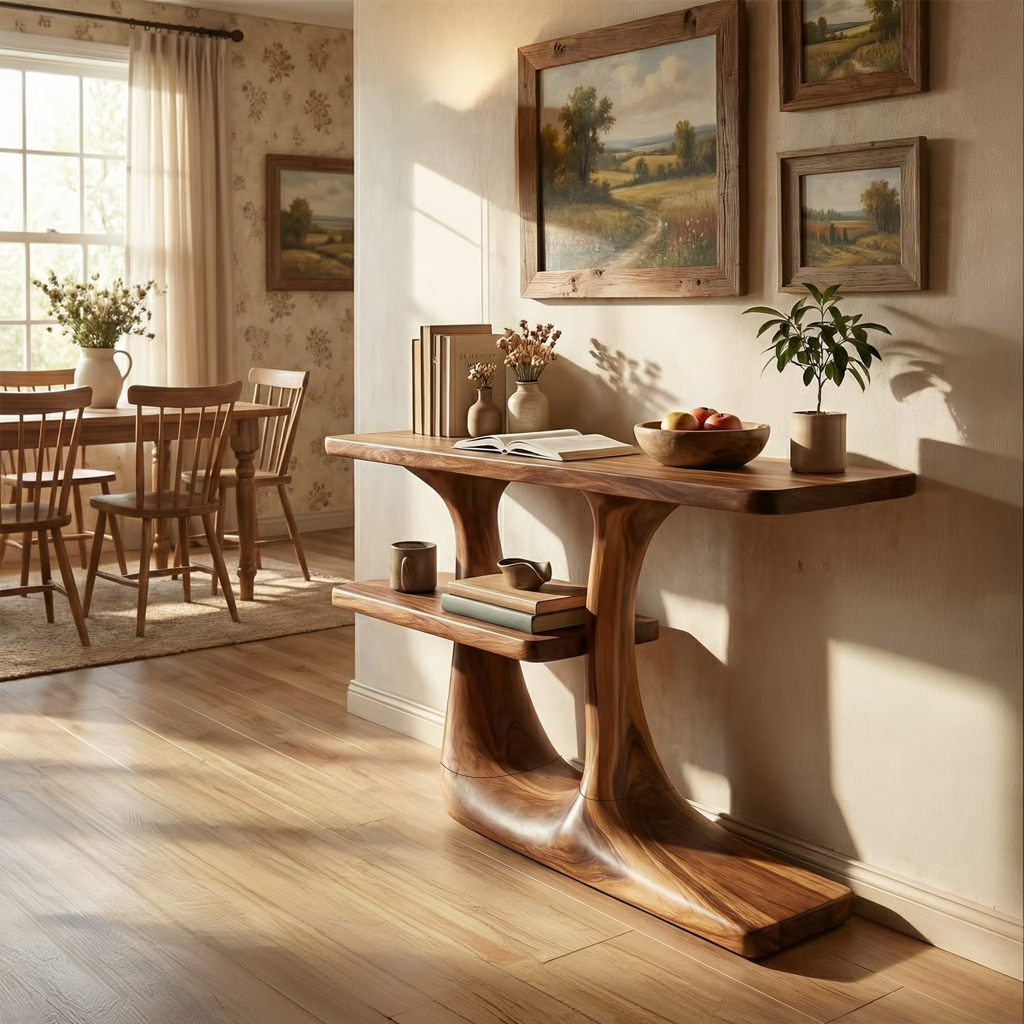 Sculptural Solid Wood Console Table for Modern Entryway