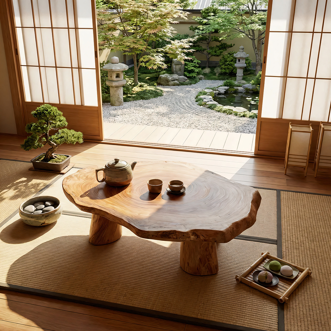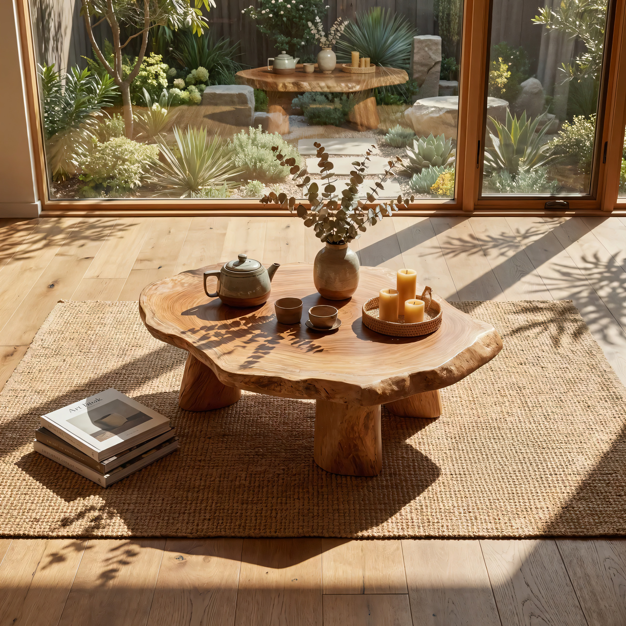 Perfect for Japandi, wabi-sabi, Zen-inspired, or minimalist interiors, this handcrafted table creates an atmosphere of calm and warmth. Whether styled as a tea table, meditation table, or low coffee table, it encourages slower living and intentional moments. No two pieces are ever identical each slab tells its own story through unique grain movement and natural variations.