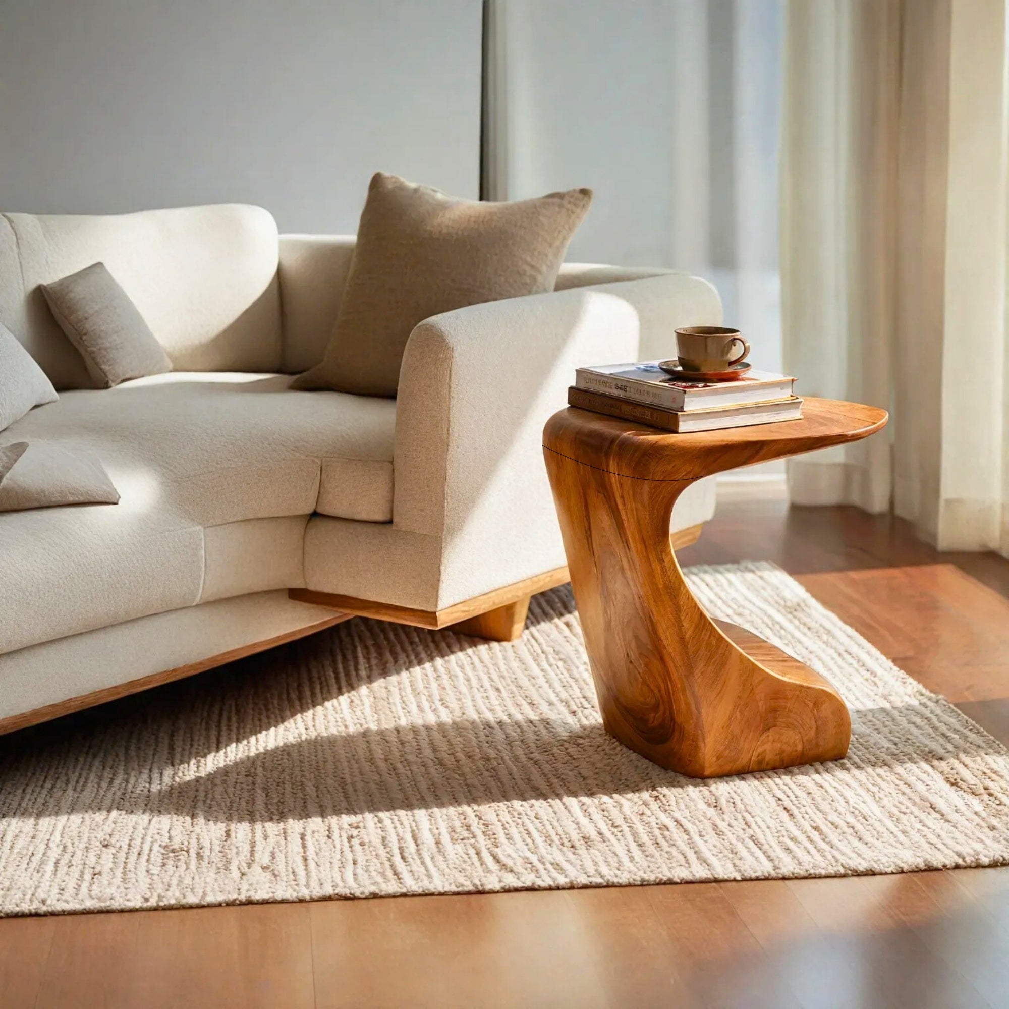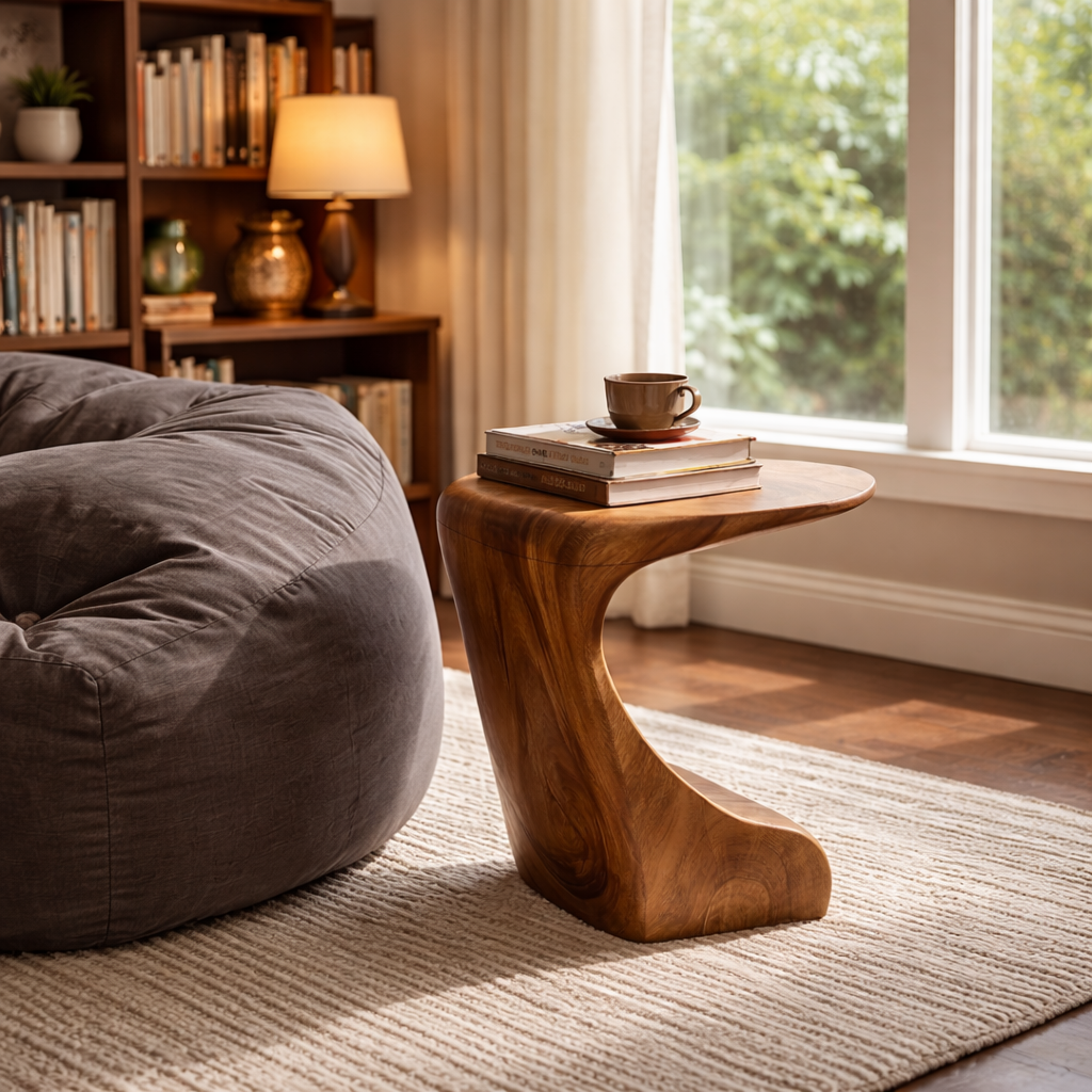 Modern Sculptural Solid Wood Side Table for Living Room Interior Decor