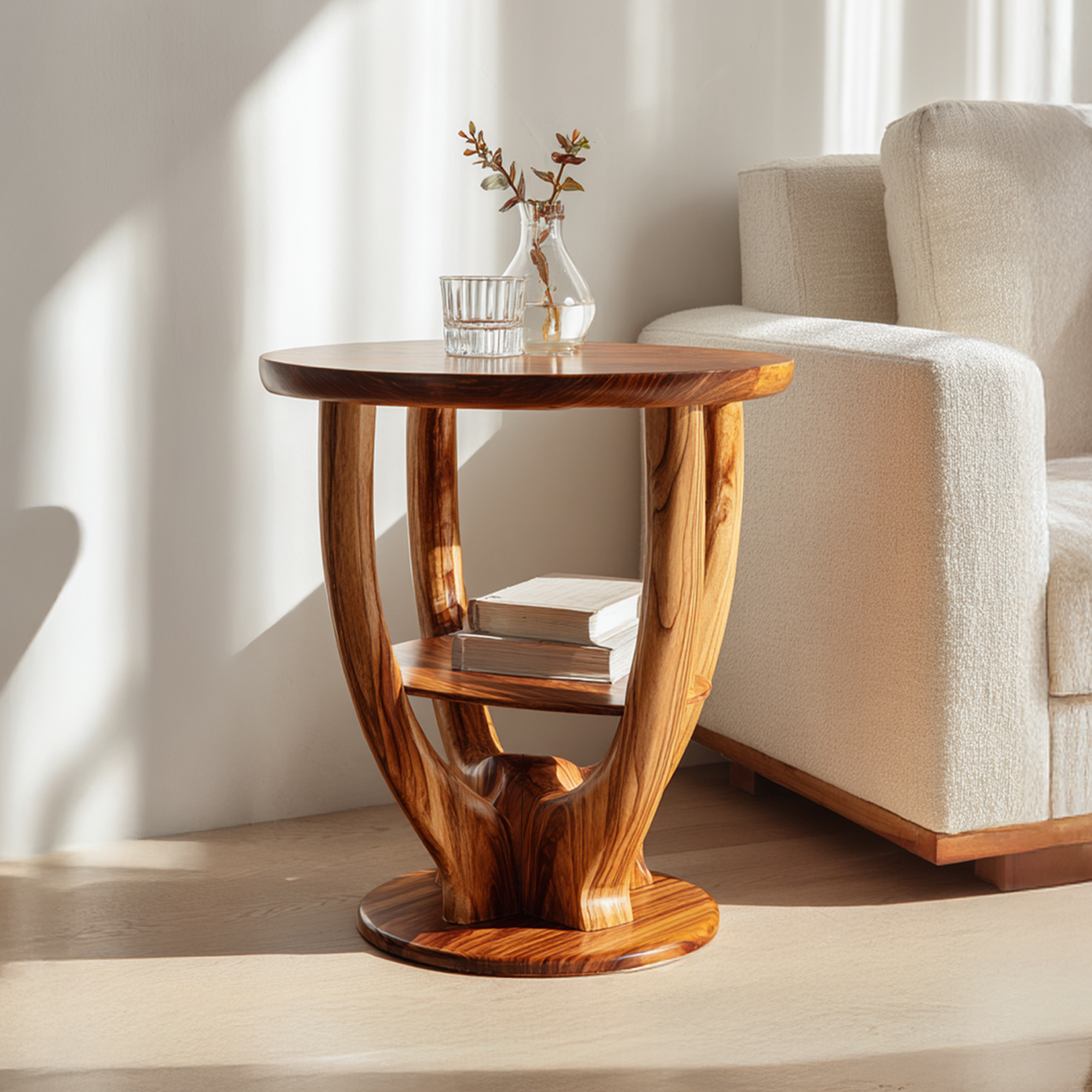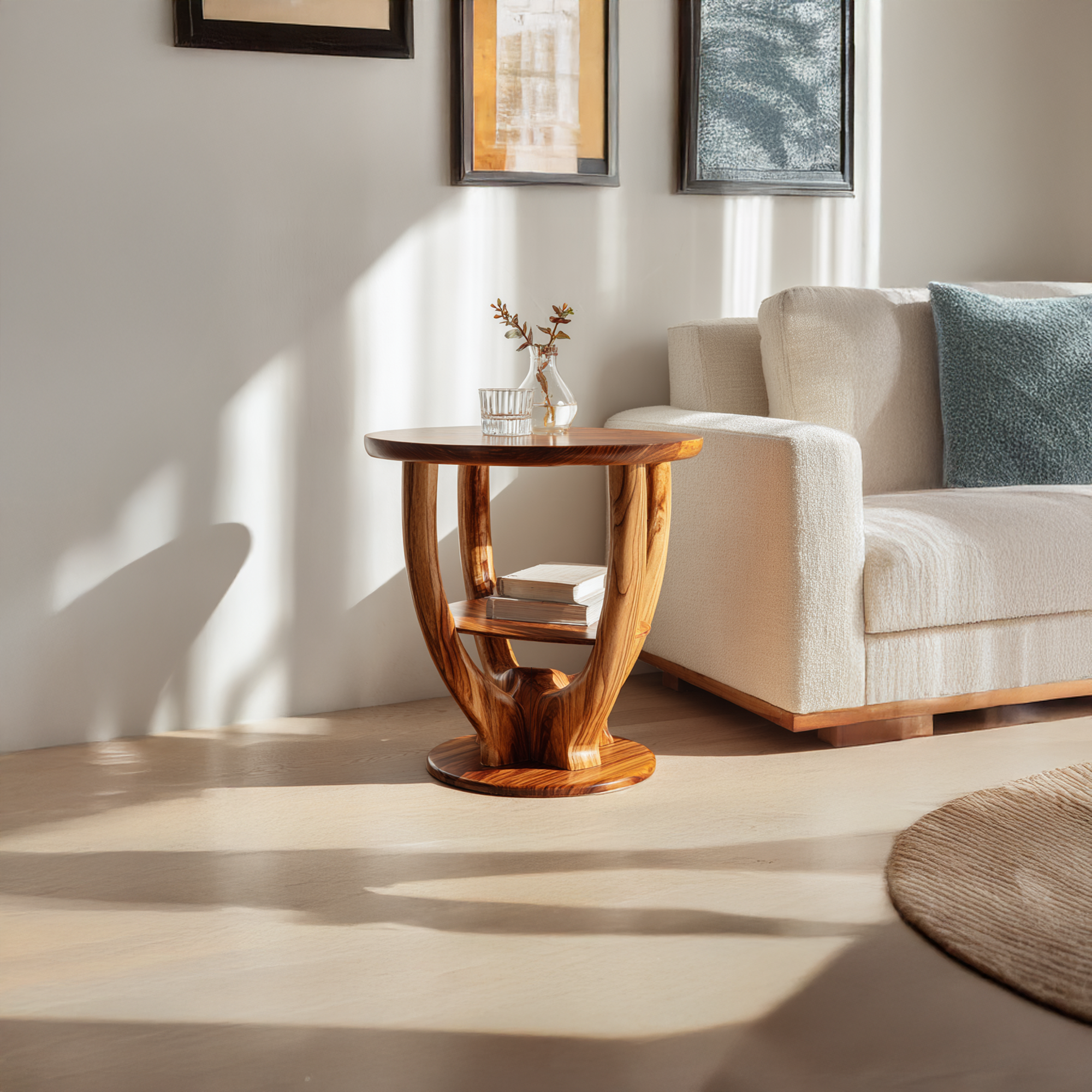 This handcrafted wood end table introduces warmth, texture, and quiet sophistication to curated spaces. More than simple home decor, it serves as a natural focal point blending artistry, functionality, and timeless design in modern living environments.