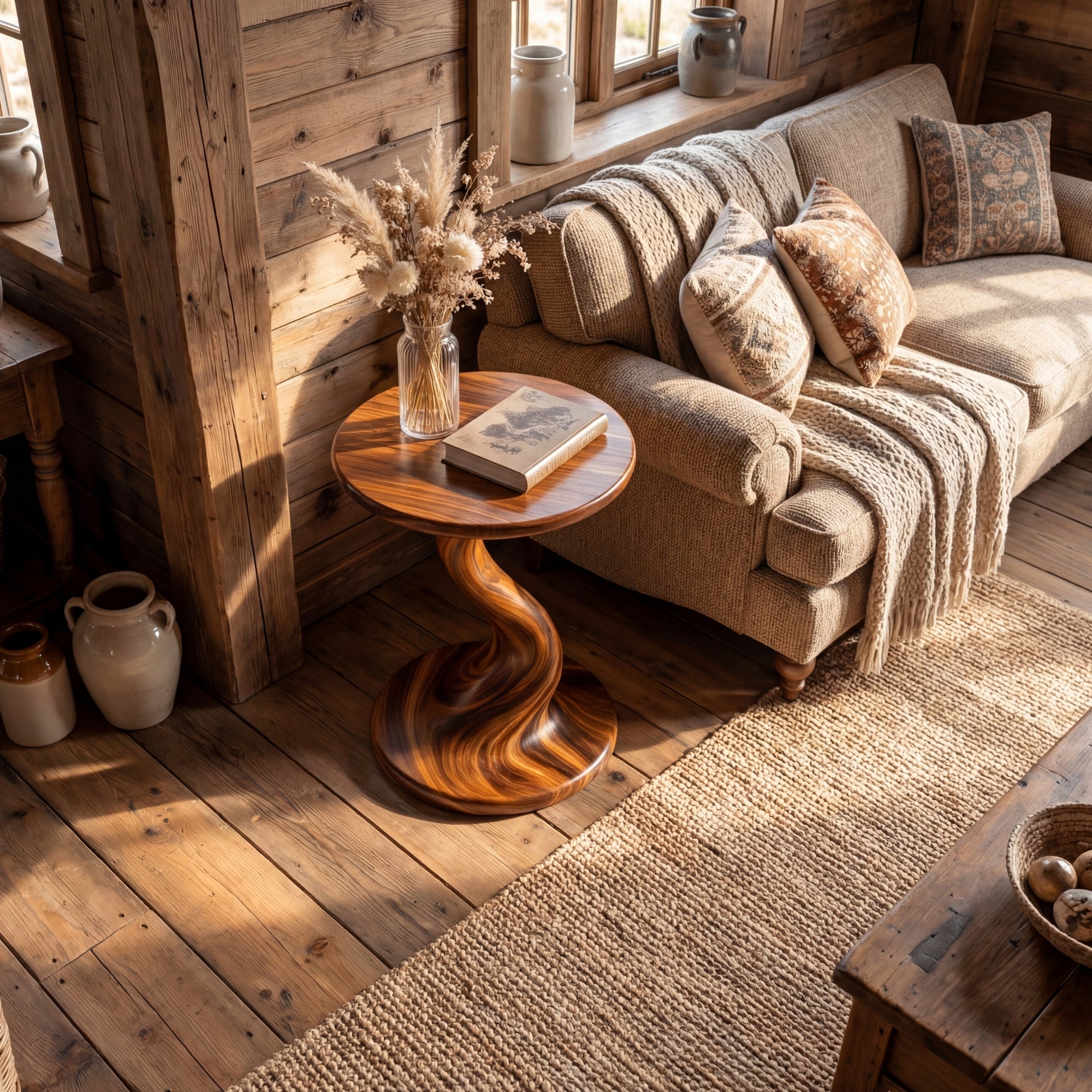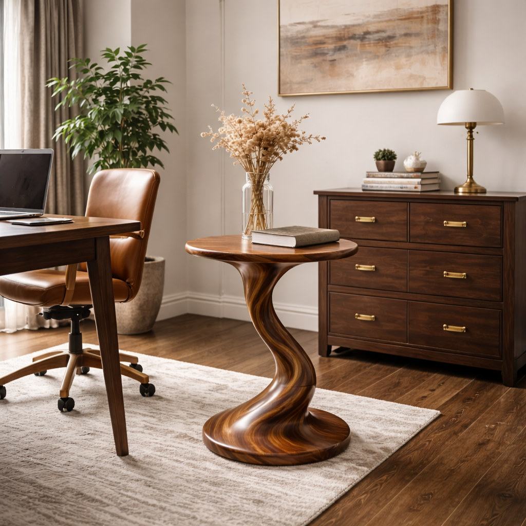 Solid Wood Sculptural Accent Table Organic Twist Design for Living Room Seating