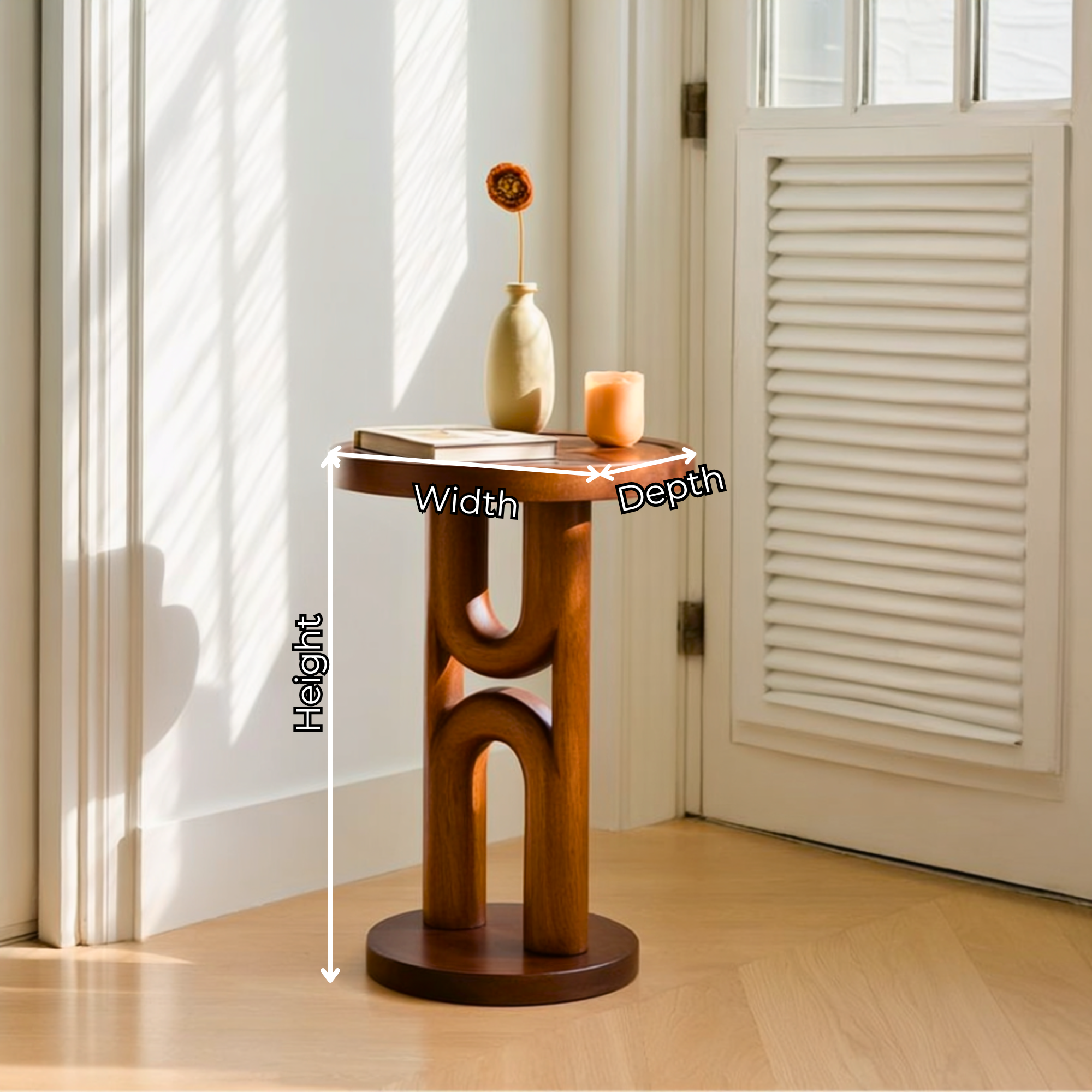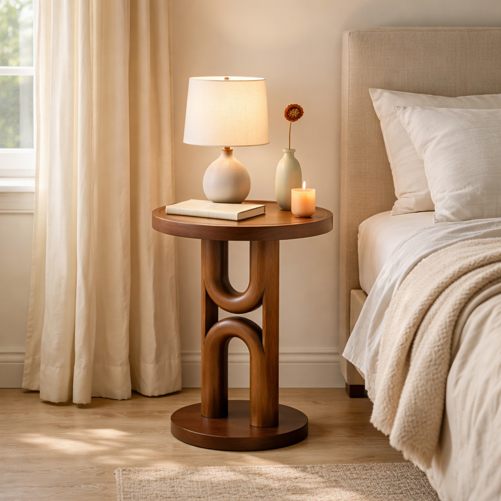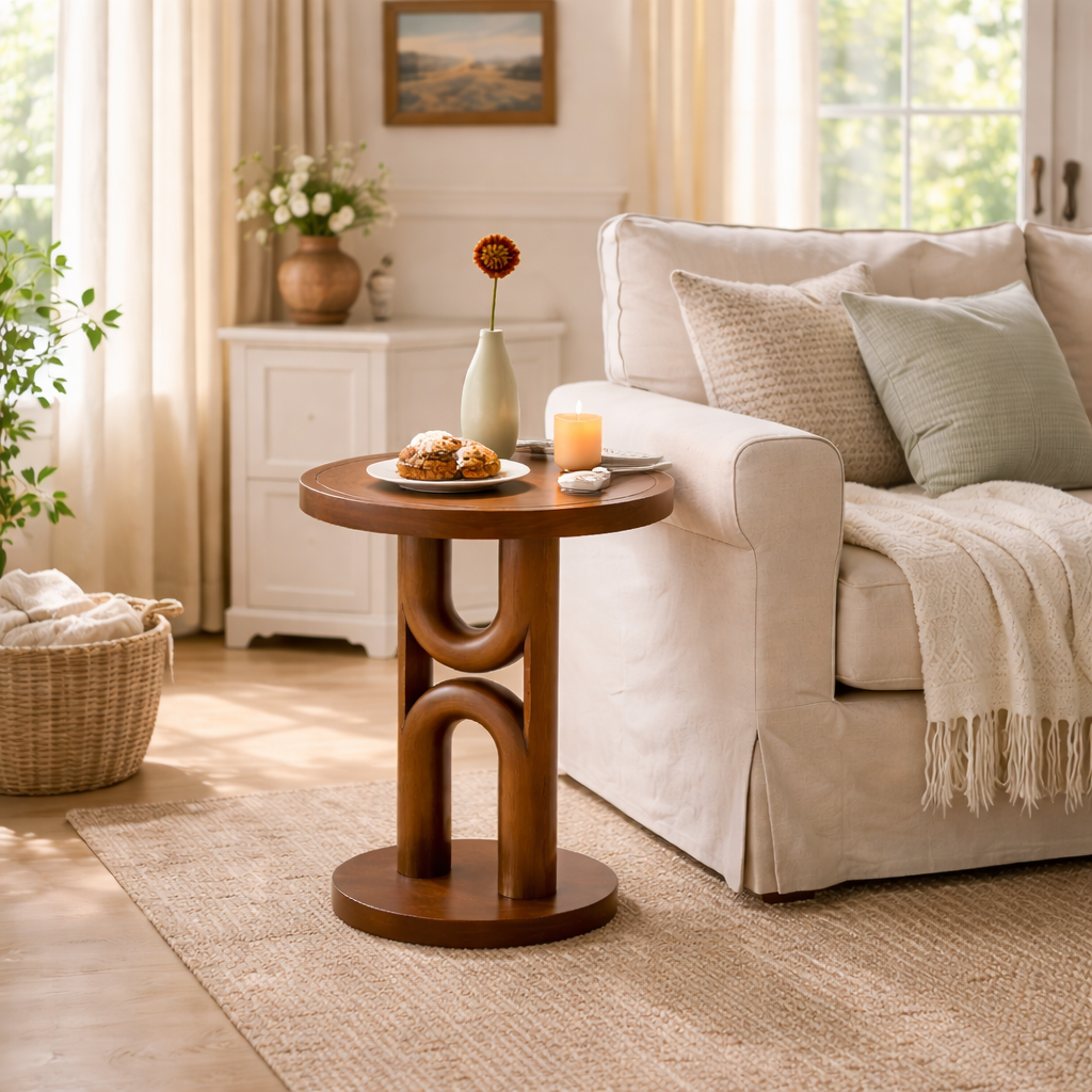 Tall Arch Solid Wood Side Table for Living Room Decor