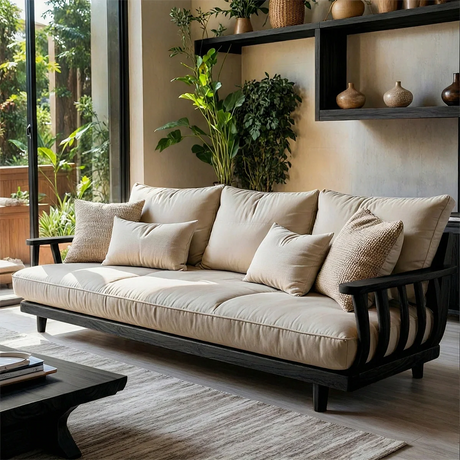 Regular price From $3,360.00Unit price /Modern Scandinavian Solid Wood Sofa Minimalist Upholstered Living Room Couch with Black Frame