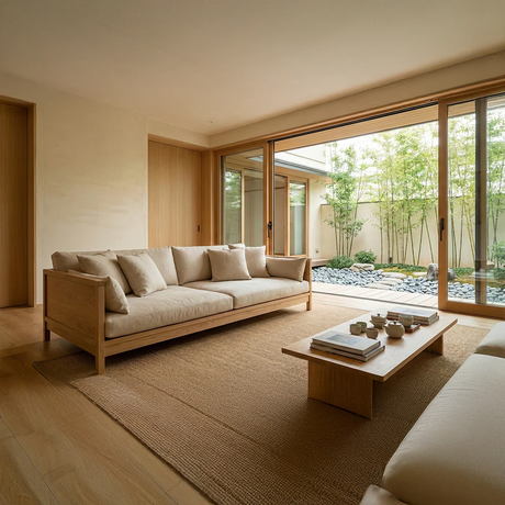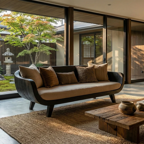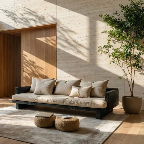 Regular price From $3,360.00Unit price /Low Profile Solid Wood Sofa with Linen Cushions for Zen Modern Living