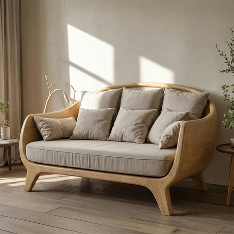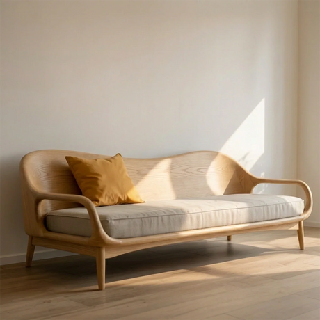 Regular price From $3,360.00Unit price /Curved Solid Wood Sofa Japanese Modern Sculptural Couch with Linen Cushion