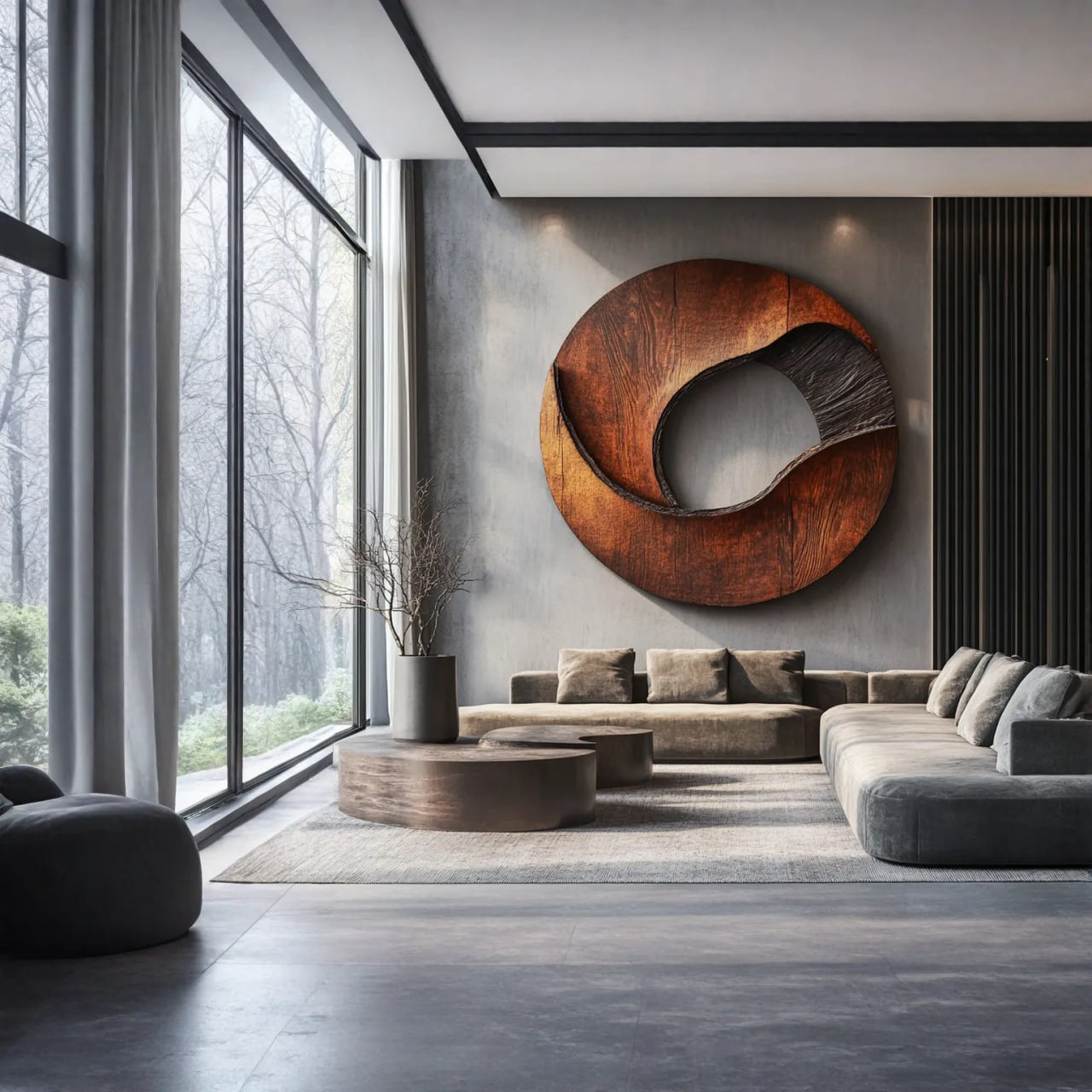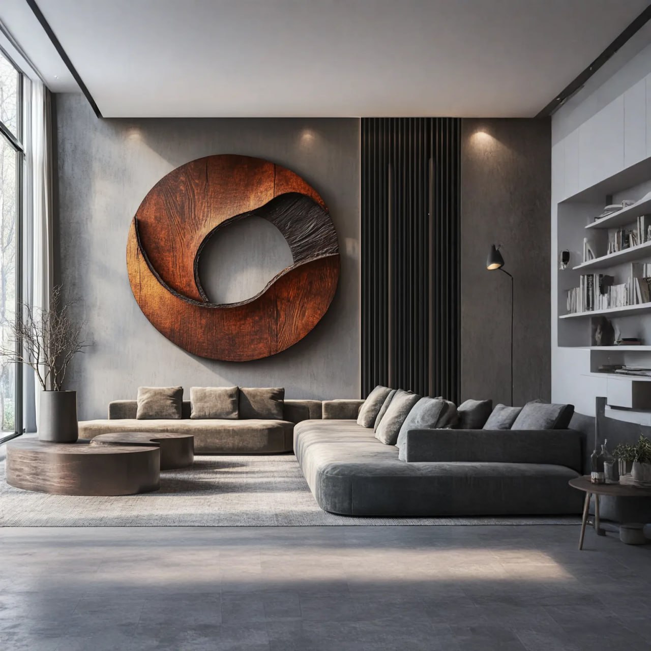 Modern Solid Wood Circular Wood Wall Art for Living Room