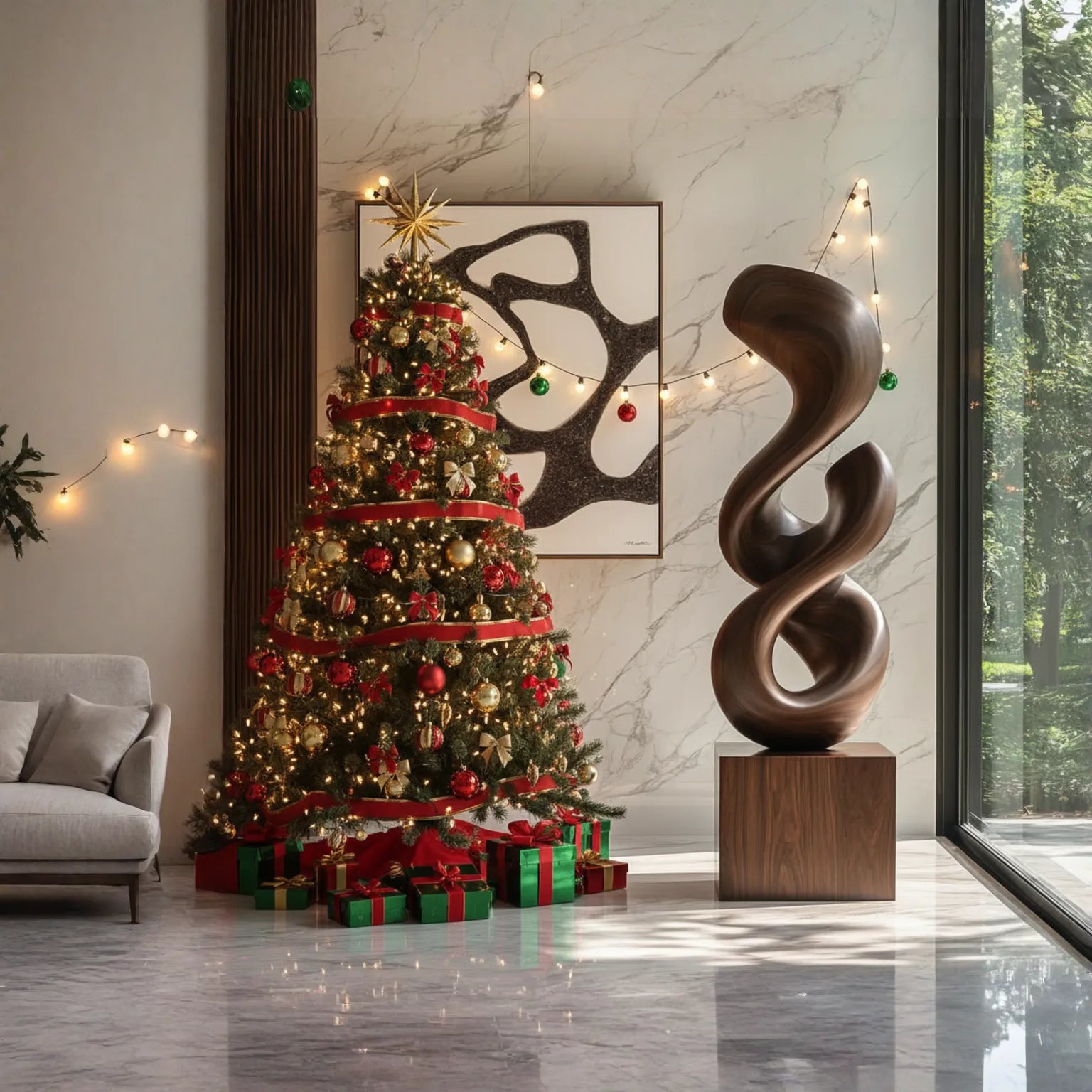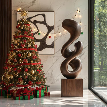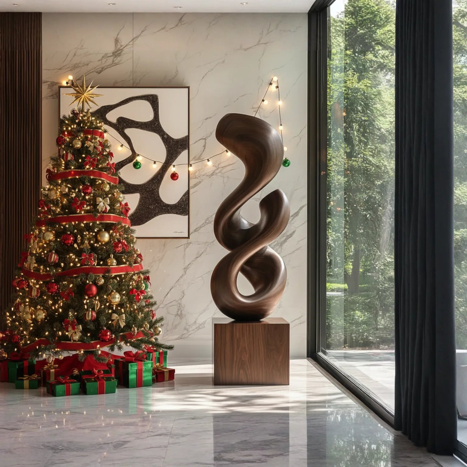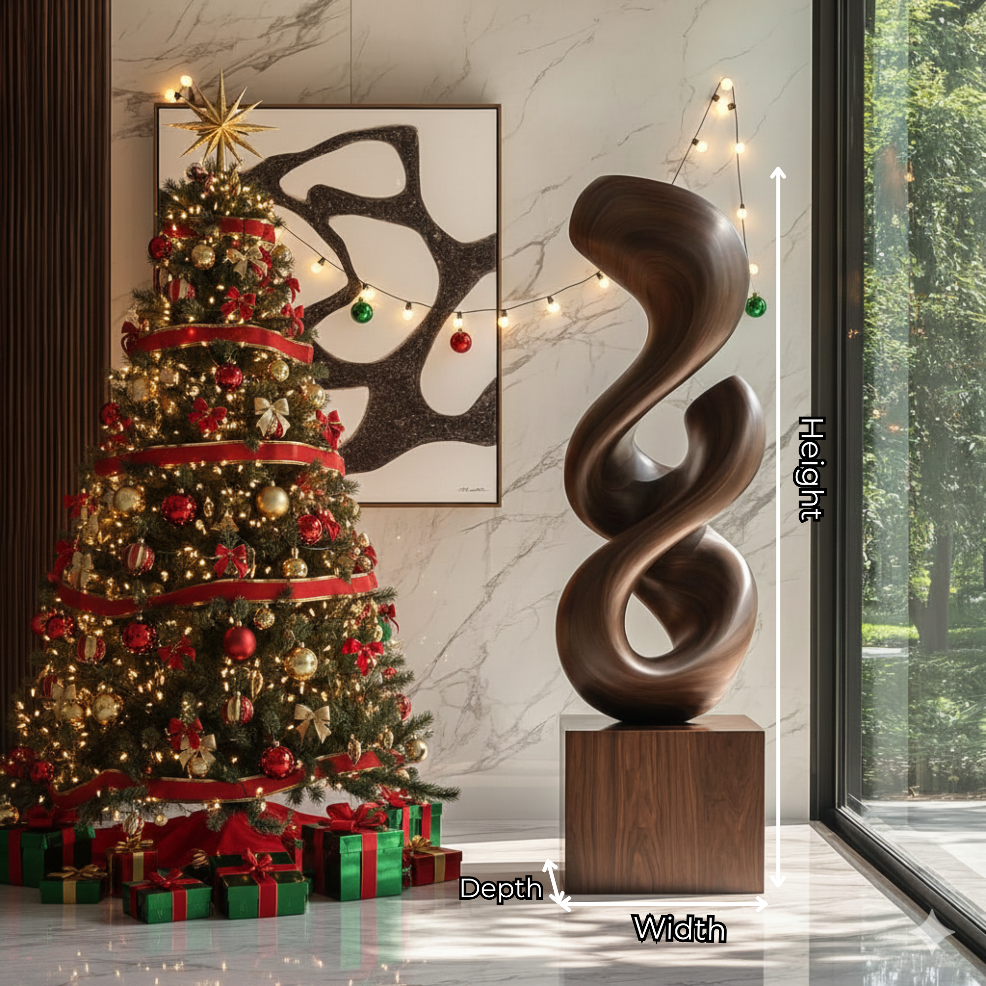 This modern abstract solid wood sculpture helps bring an artistic sense of movement, balance, and contemporary form to a range of spaces. With its fluid curves and sculptural openings, the piece allows natural light to travel through and around it, creating dynamic shadows and soft highlights as the day progresses.