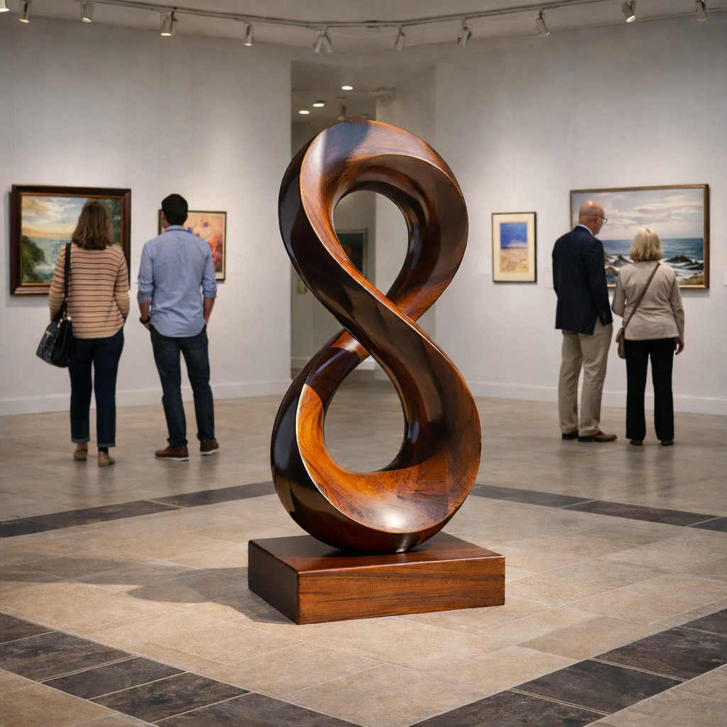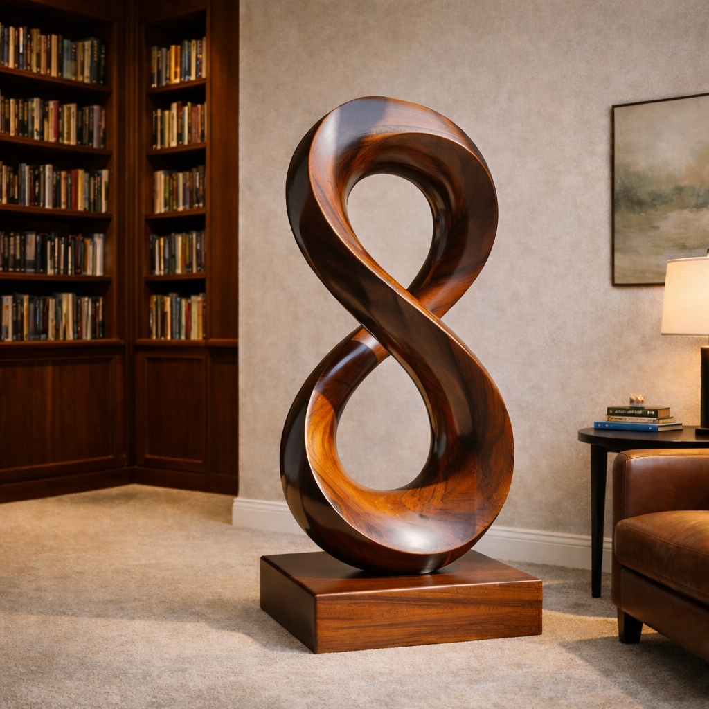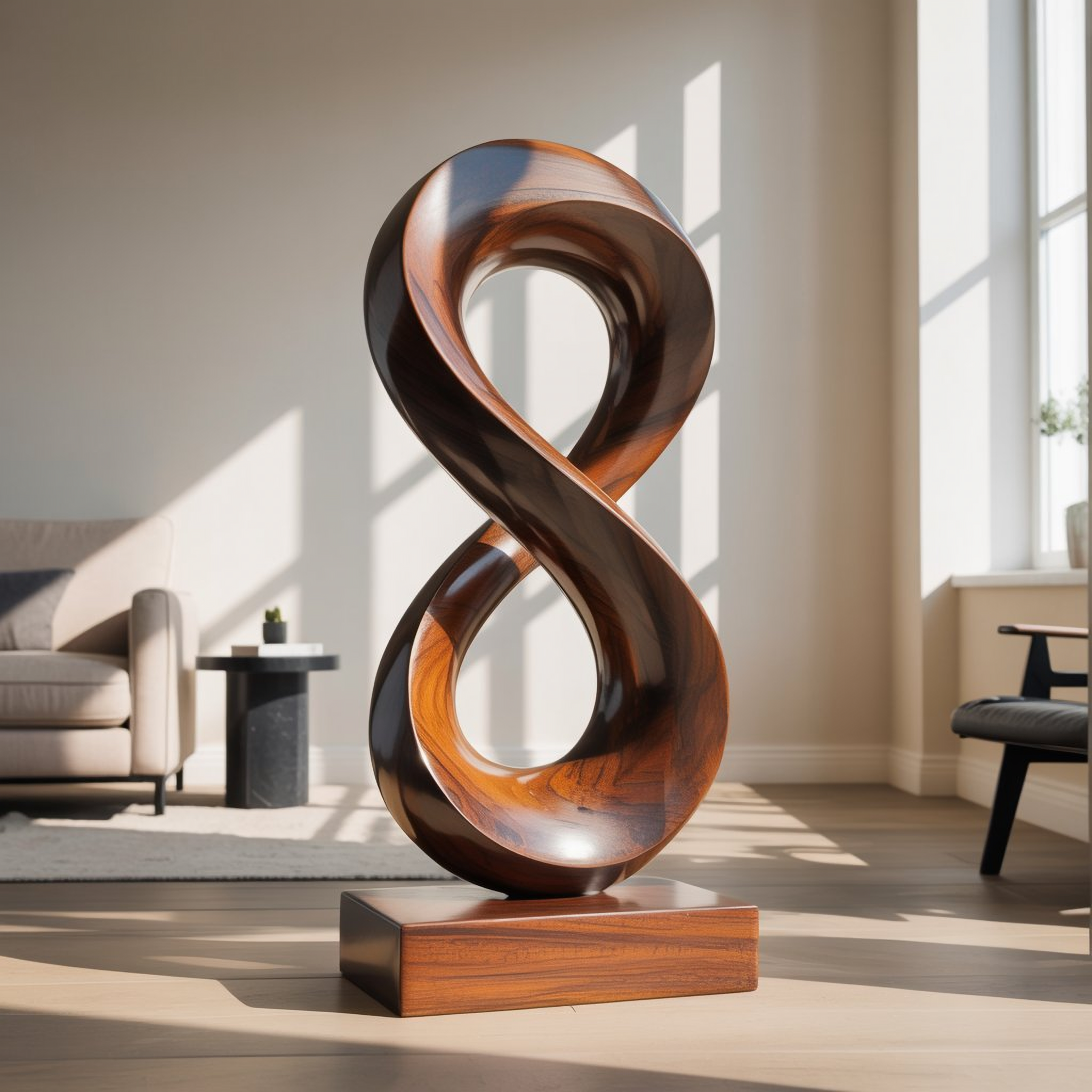 Solid Wood Infinity Curve Sculpture for Modern Living Spaces