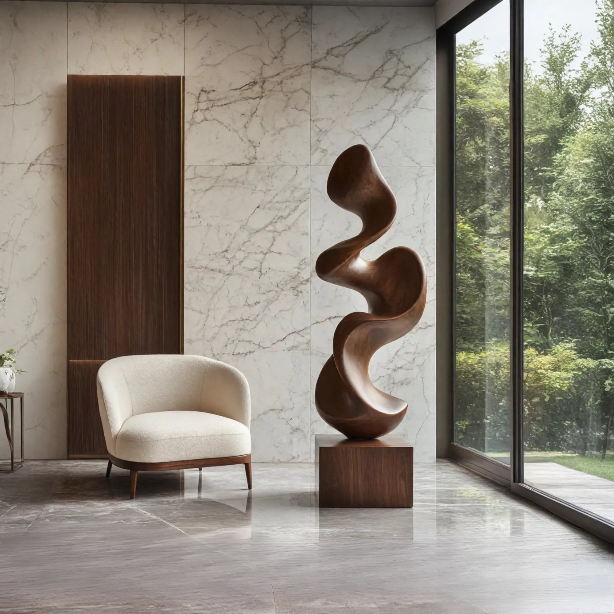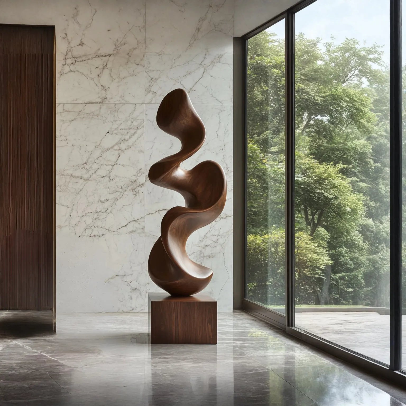 This piece works well in living rooms, grand entryways, art-focused interiors, or private collections. With its refined proportions and sculptural character, it serves as a focal point that complements modern, minimalist, or nature-inspired design environments. Because solid wood is a natural material and handcrafted processes, natural variations in grain, tone, and surface details are expected, no two pieces are exactly alike.