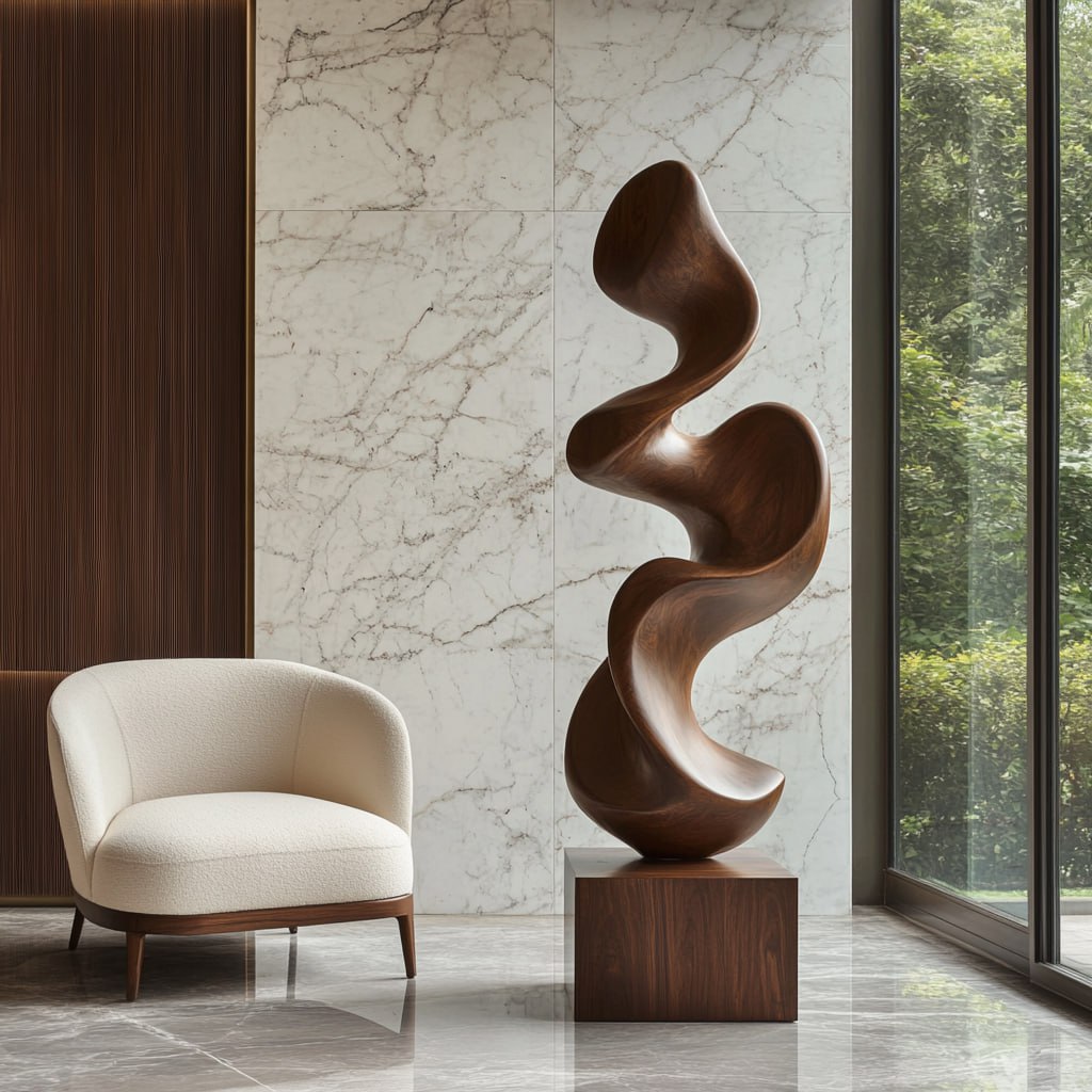 Abstract Solid Wood Floor Sculpture for Modern Organic Living Room Interiors