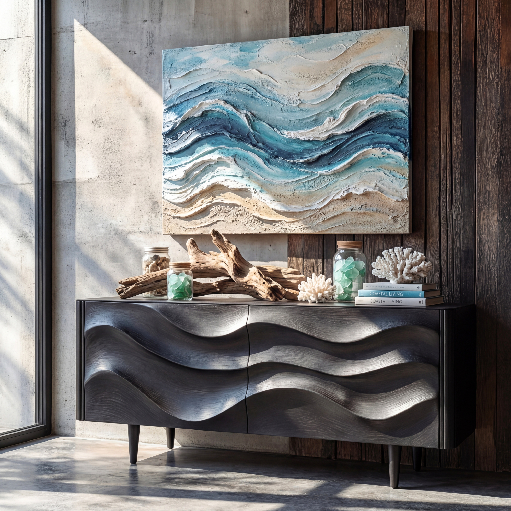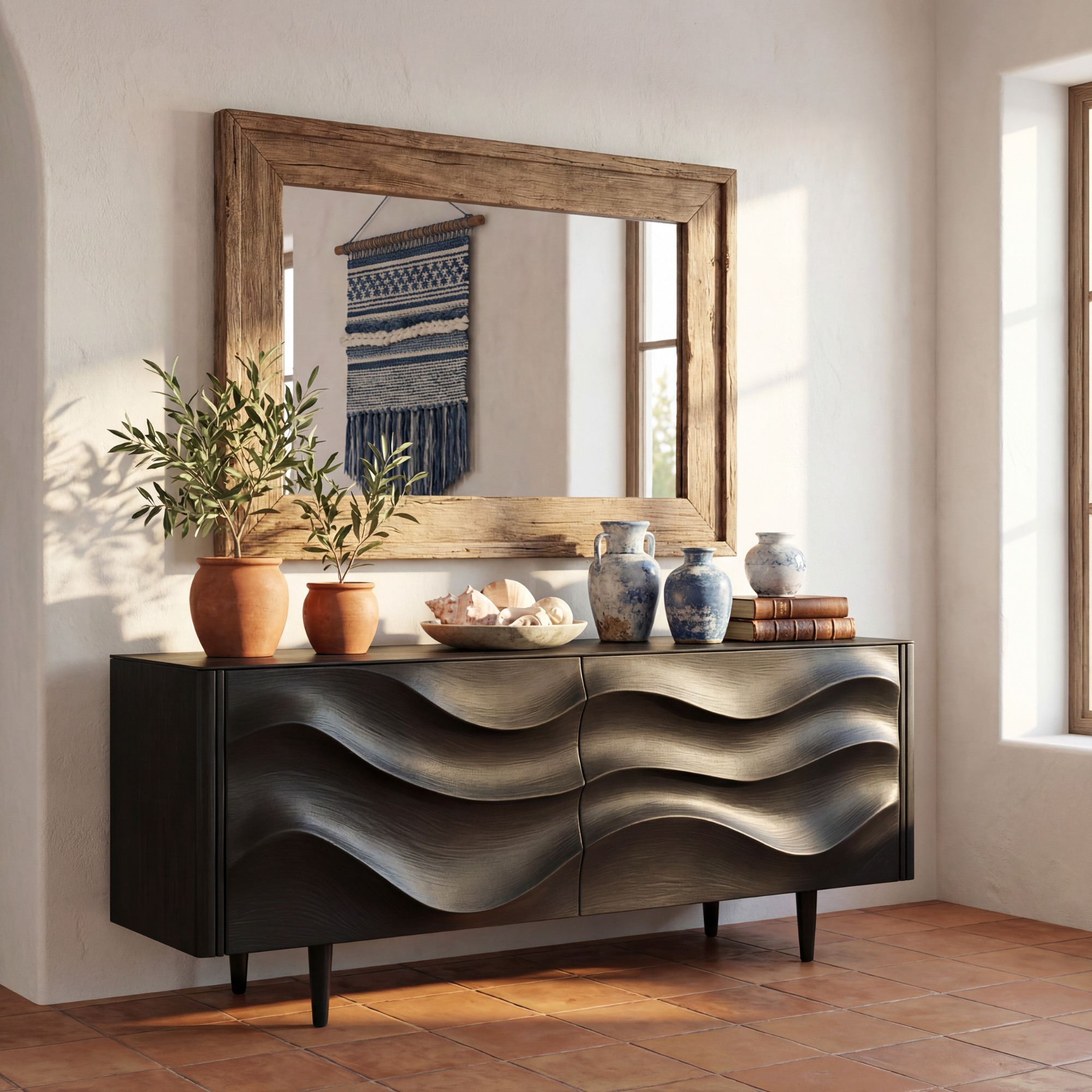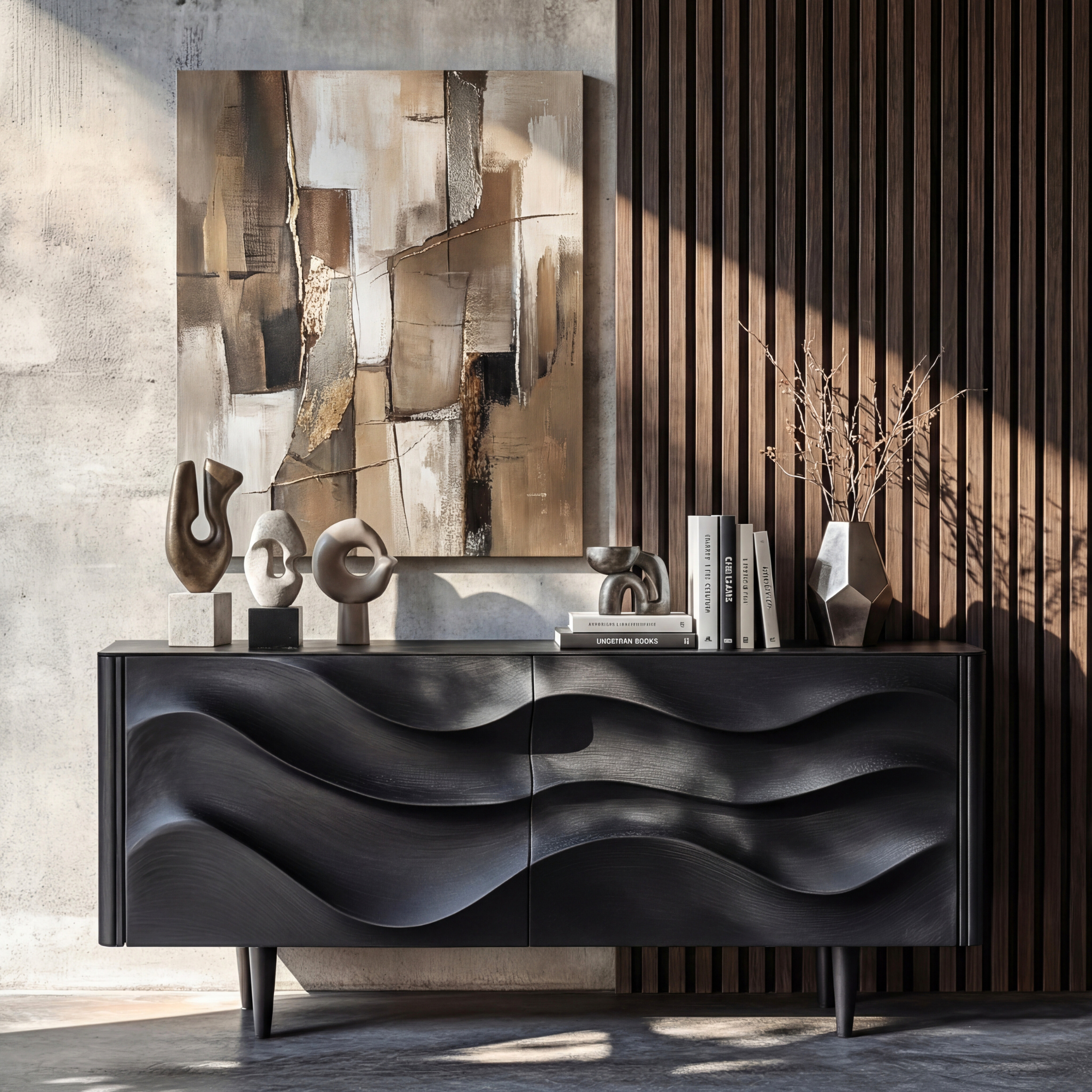 Sculpted Black Wave Sideboard for Modern Living Room and Dining Storage
