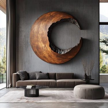 Contemporary Solid Wood Crescent Wood Wall Art for Living Rooms