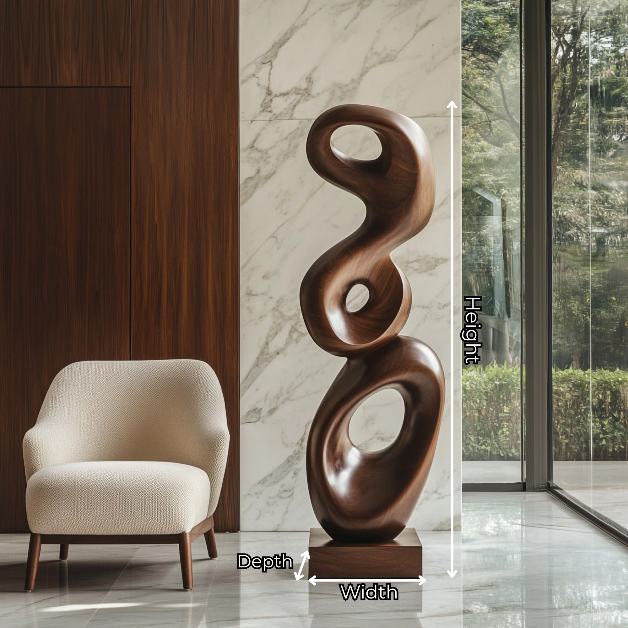 Placed in a living room, gallery hall, studio, or private sitting area, the sculpture serves as a focal point without overpowering the space. It introduces a sense of movement and clarity, enhancing interiors that value simplicity, a grounded atmosphere, and contemporary elegance.