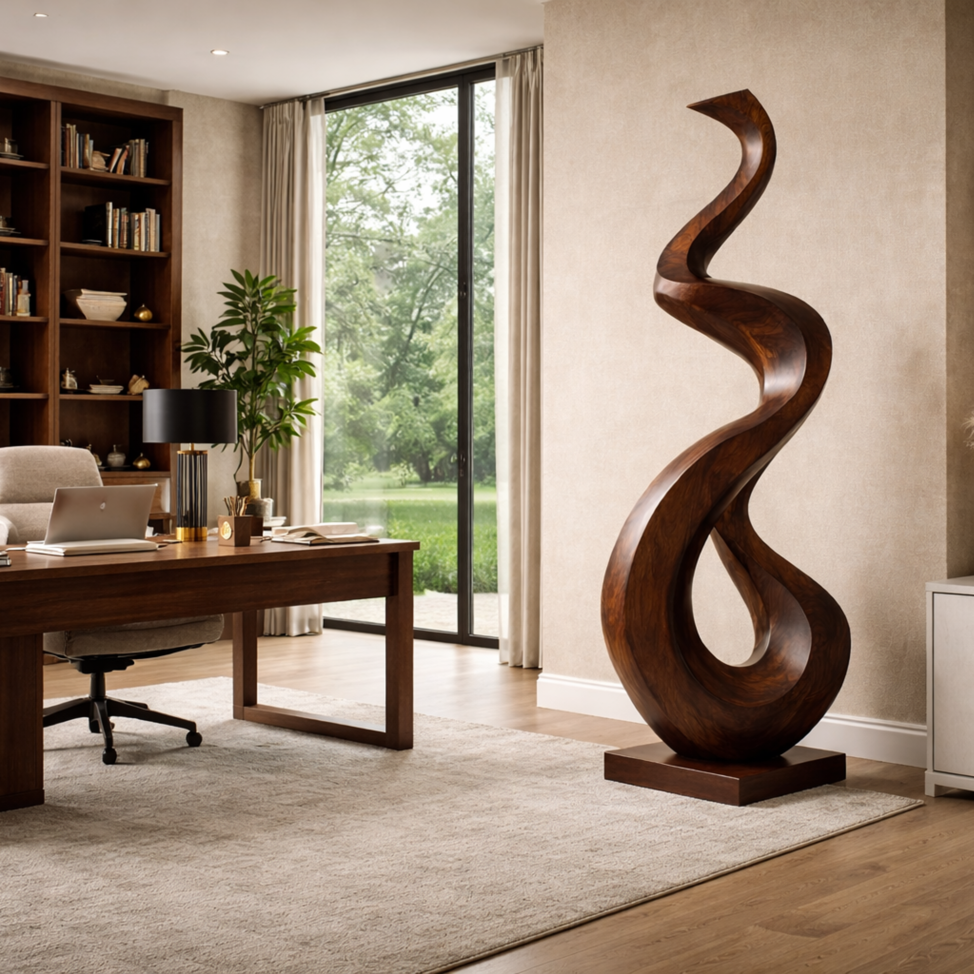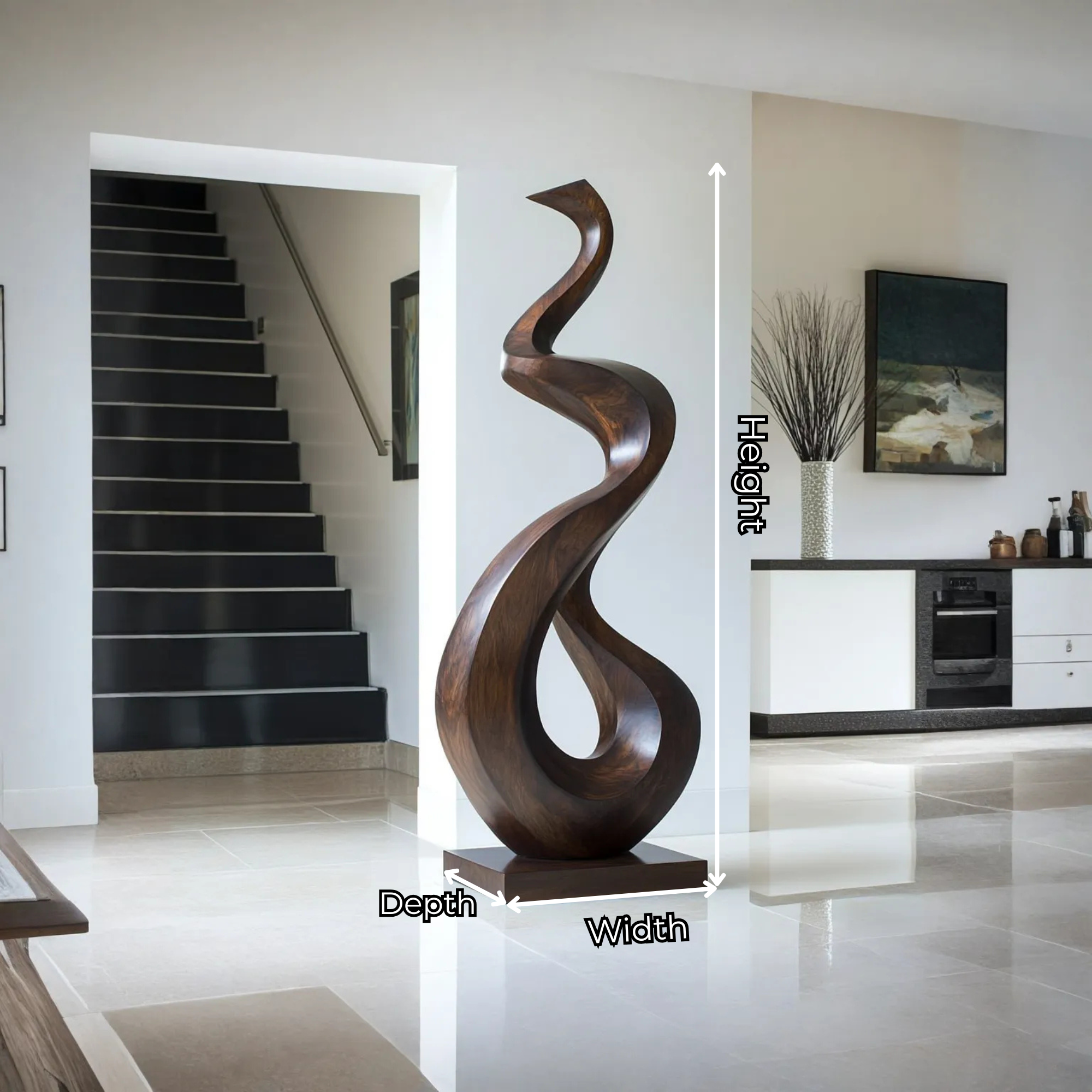 Perfect for entryways, living rooms, private lounges, or gallery-inspired interiors, the sculpture stands as a statement of organic beauty and modern refinement. Its quiet presence makes it well suited to spaces designed for reflection and creativity.