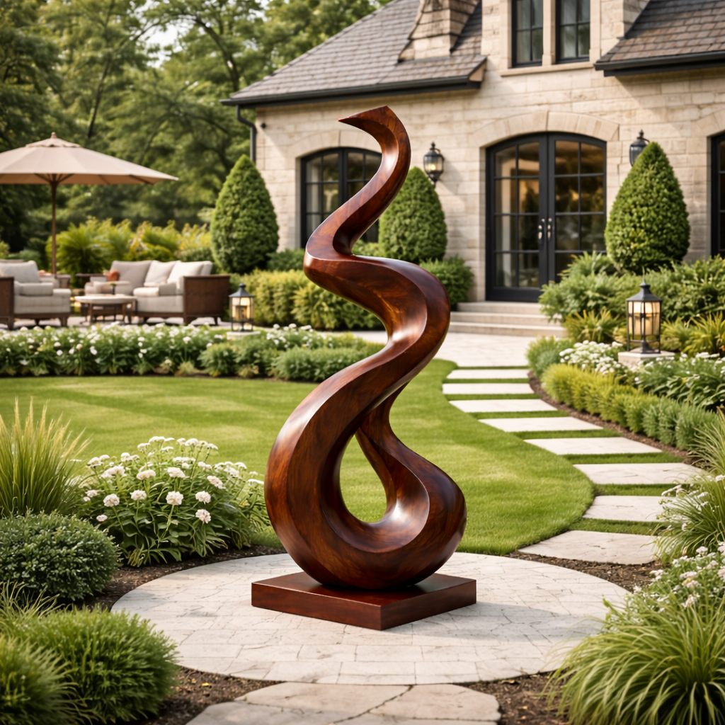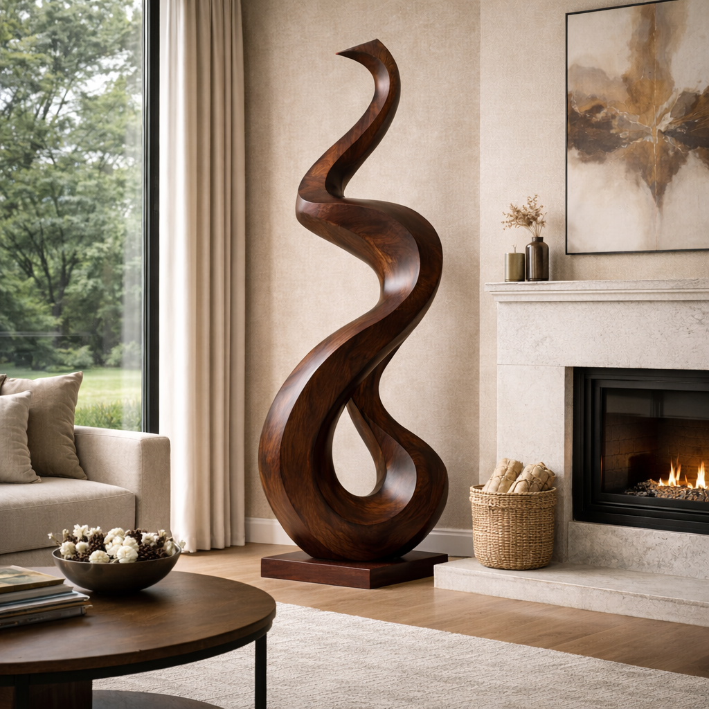Hand-Carved Abstract Solid Wood Sculpture for Modern Home Interiors