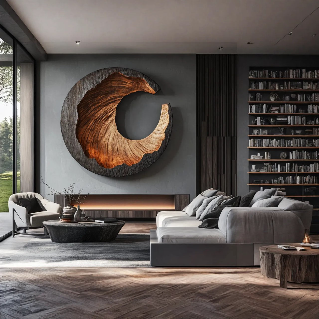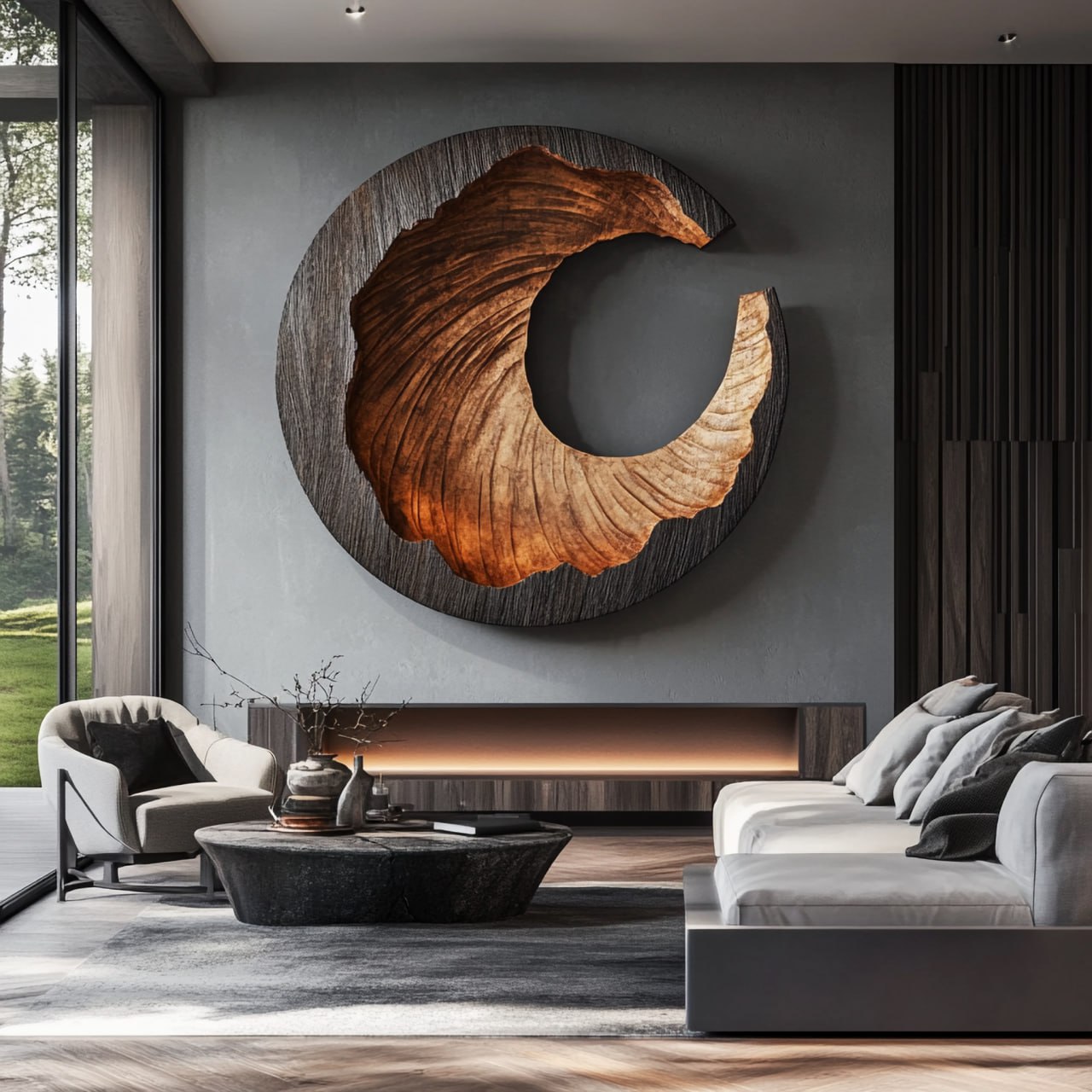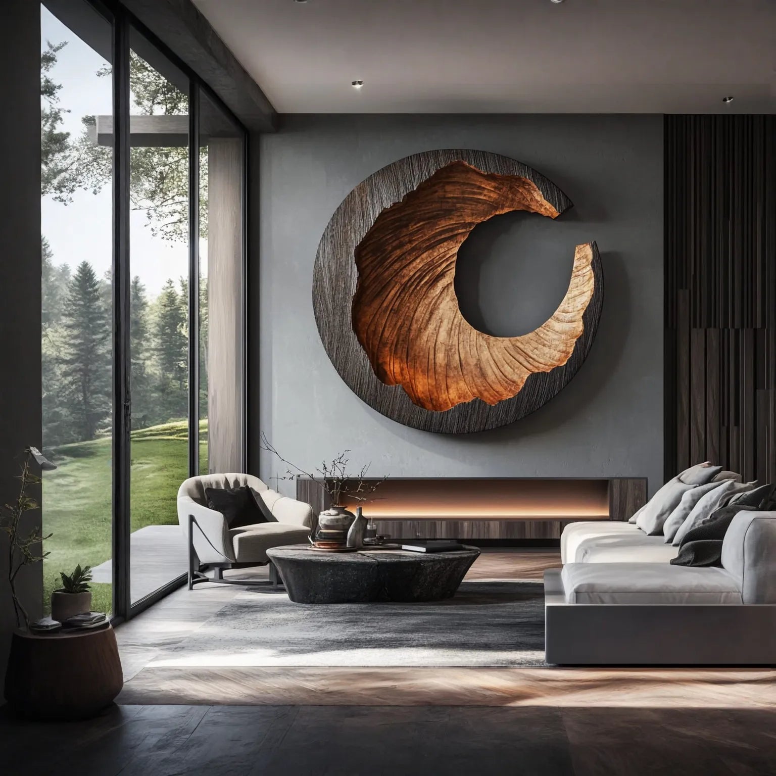 Suitable for living rooms, large entry areas, or open interior layouts, this artwork pairs well with natural materials and calm interior palettes. It serves as a thoughtful focal point for modern and minimalist design environments. Because solid wood is a natural material and each piece is finished individually, slight variations in grain, tone, and surface detail may occur.