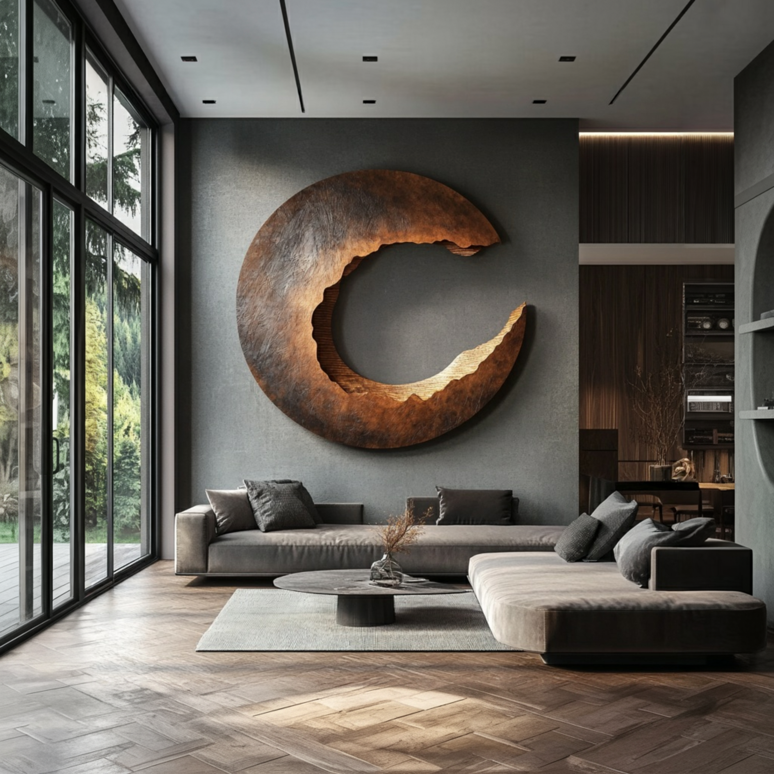 Crafted from solid wood, each contour is shaped to follow the grain’s natural flow, creating an artistic yet architectural presence. Designed as a feature wall centerpiece, it adds organic elegance and contemporary balance to the space.