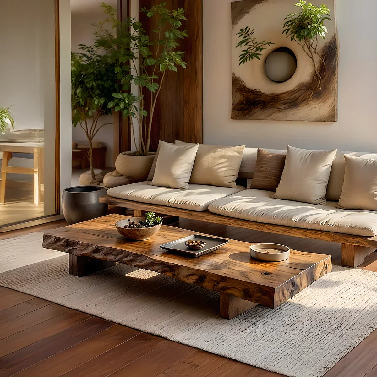 Live-Edge Solid-Wood Coffee Table for Japandi Living Rooms