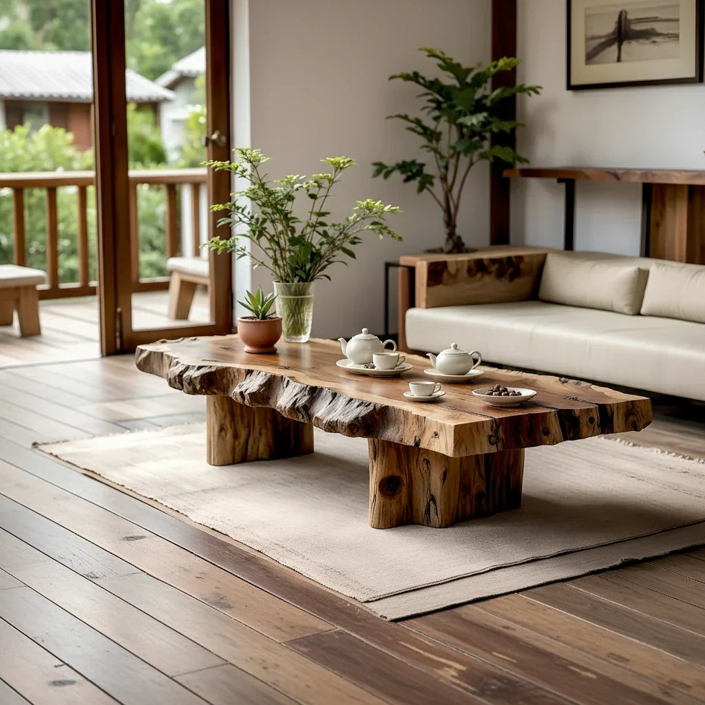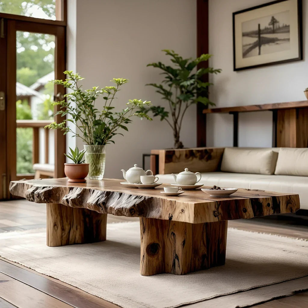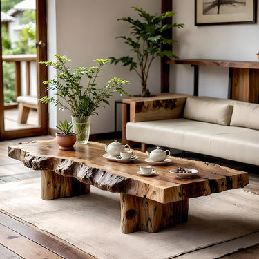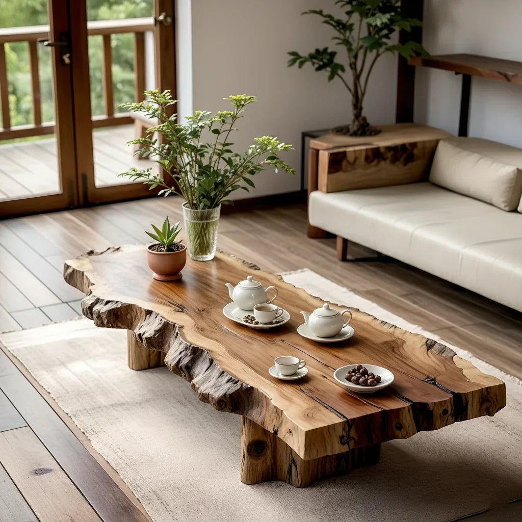 Live Edge Solid Wood Coffee Table for Zen Living Room