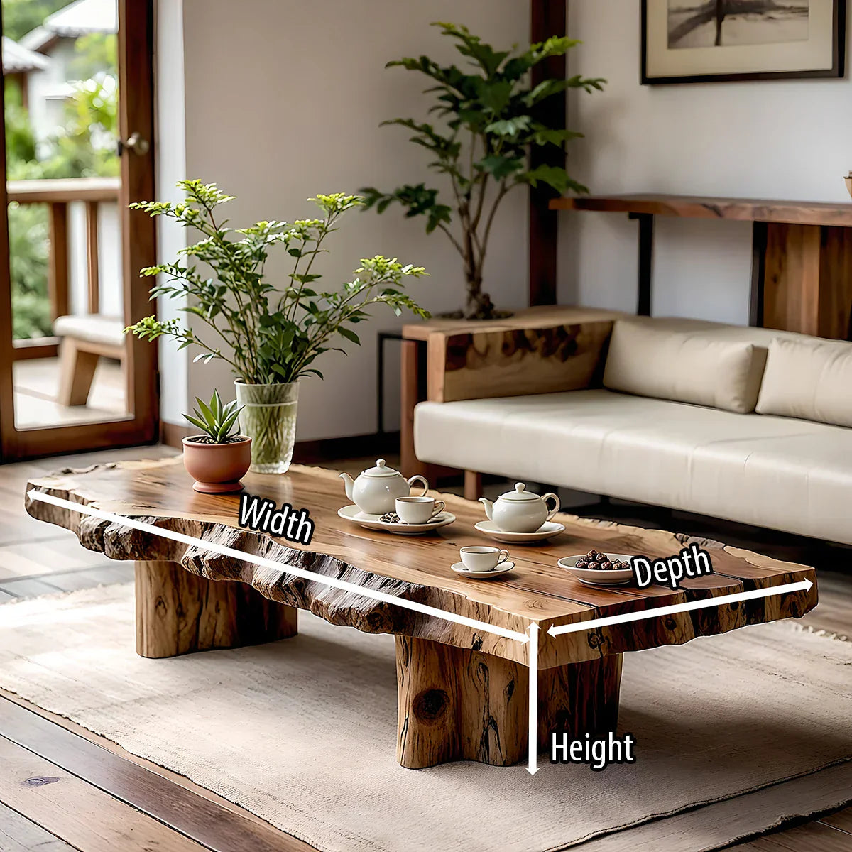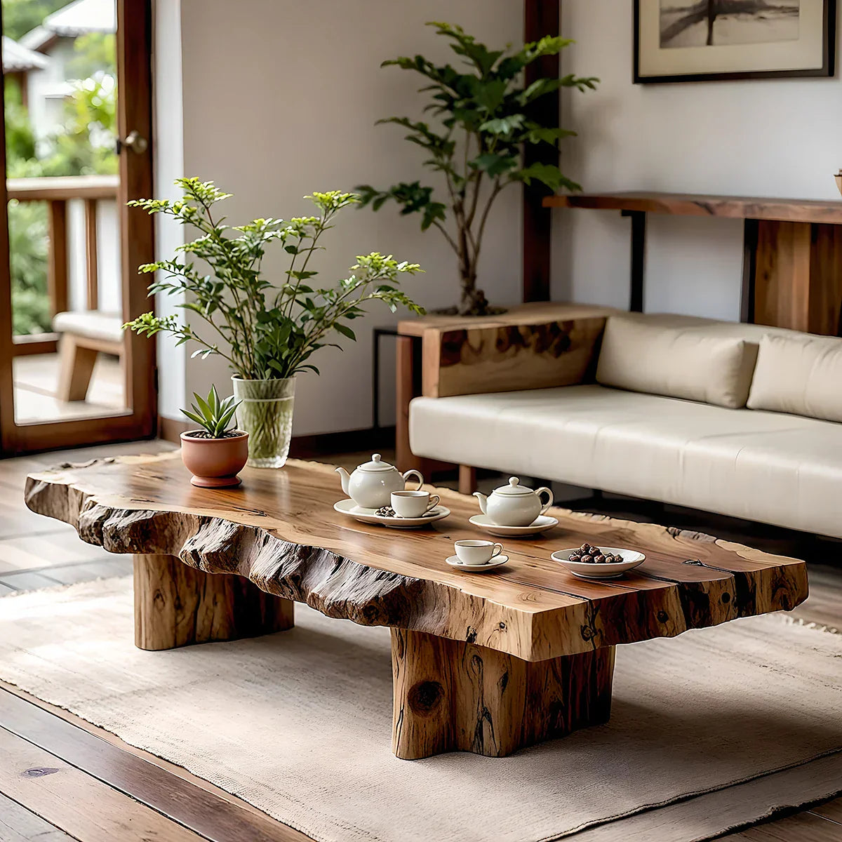 Ideal for modern, minimalist, Japandi, or nature-inspired interiors, this coffee table brings warmth and an organic presence to the heart of the room. It pairs beautifully with neutral sofas, indoor plants, and simple ceramic tableware, creating a tranquil, curated atmosphere. Whether styled in a private living room, boutique hotel lounge, or spa inspired retreat, it functions as both practical furniture and sculptural natural-wood décor, adding quiet luxury to any modern interior.