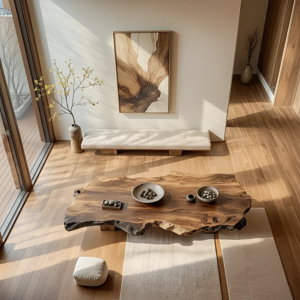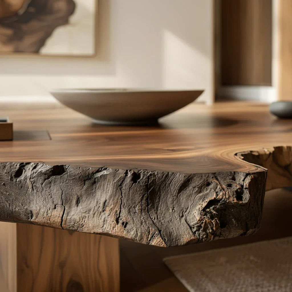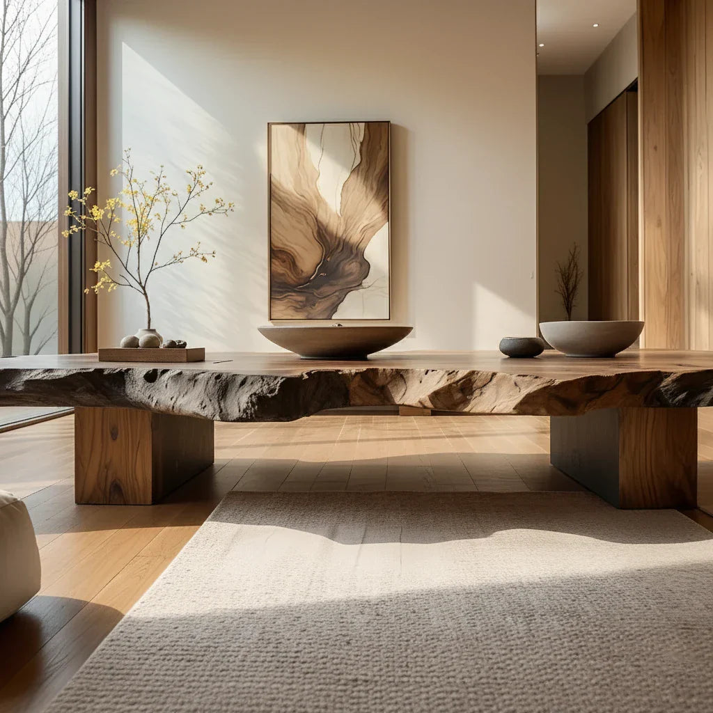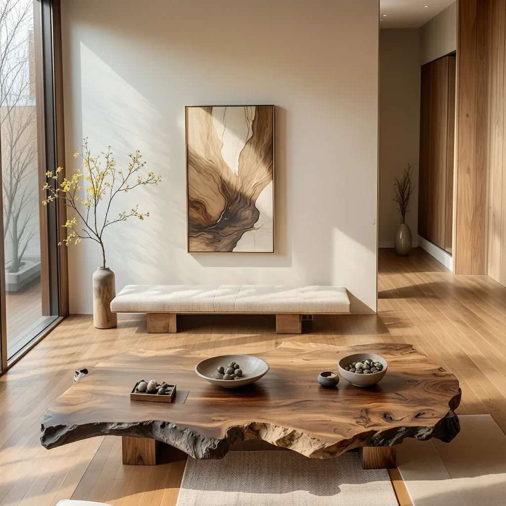 Low Live-Edge Solid-Wood Table for Minimalist Tea Lounges
