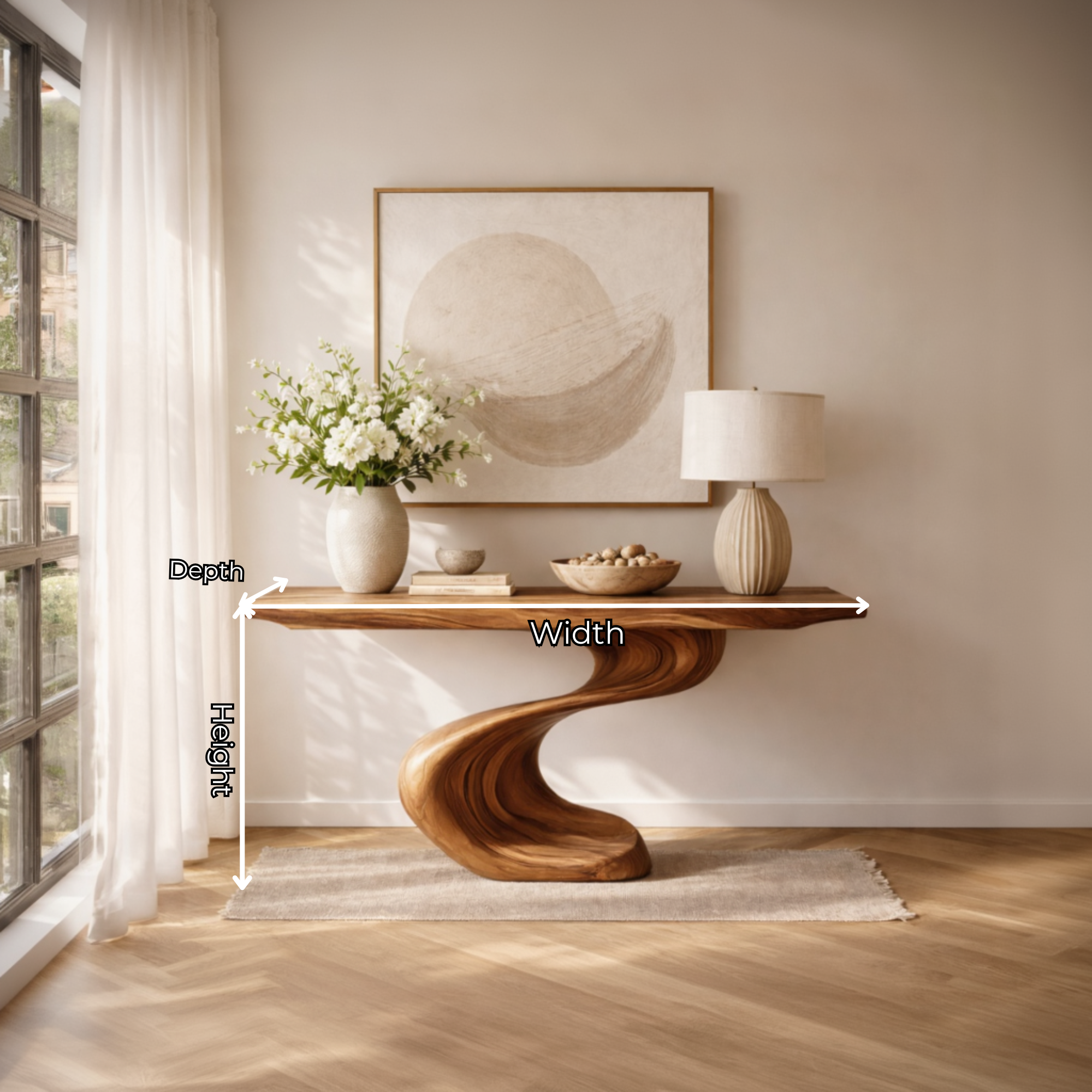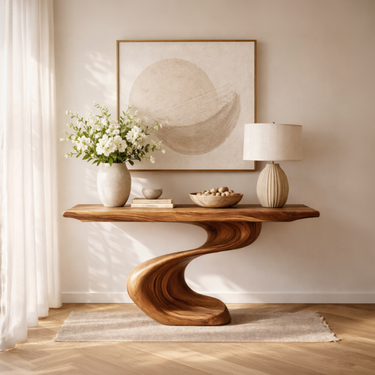 Sculptural Solid Wood Console Table with Wave Base