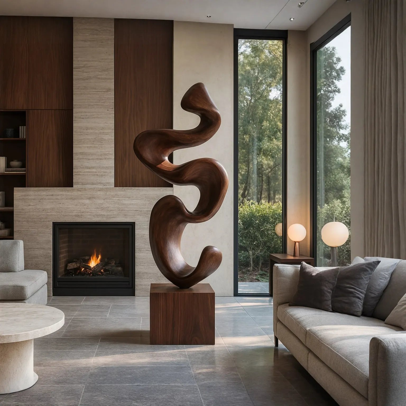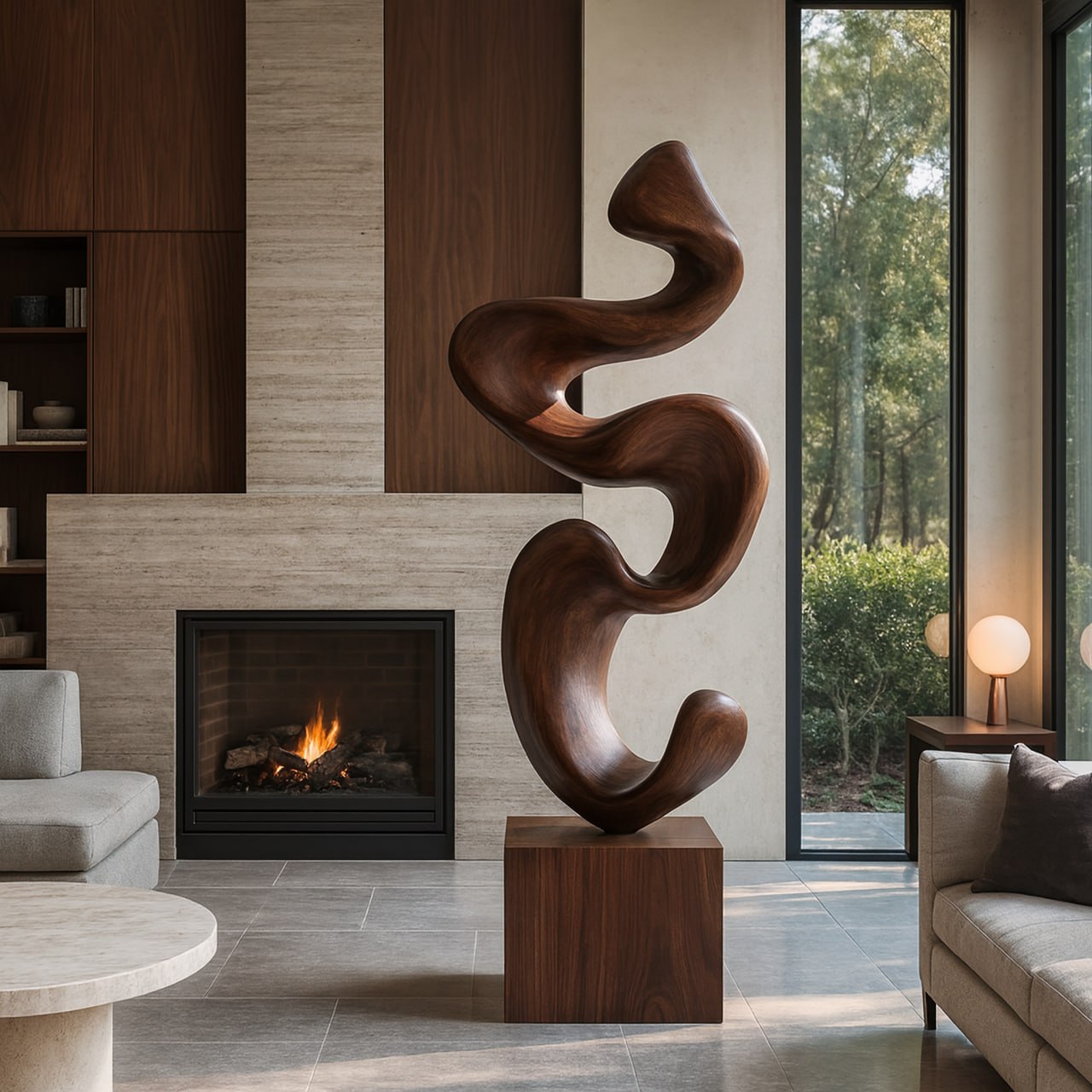 Modern Abstract Solid Wood Sculpture for Living Room Contemporary Organic Art