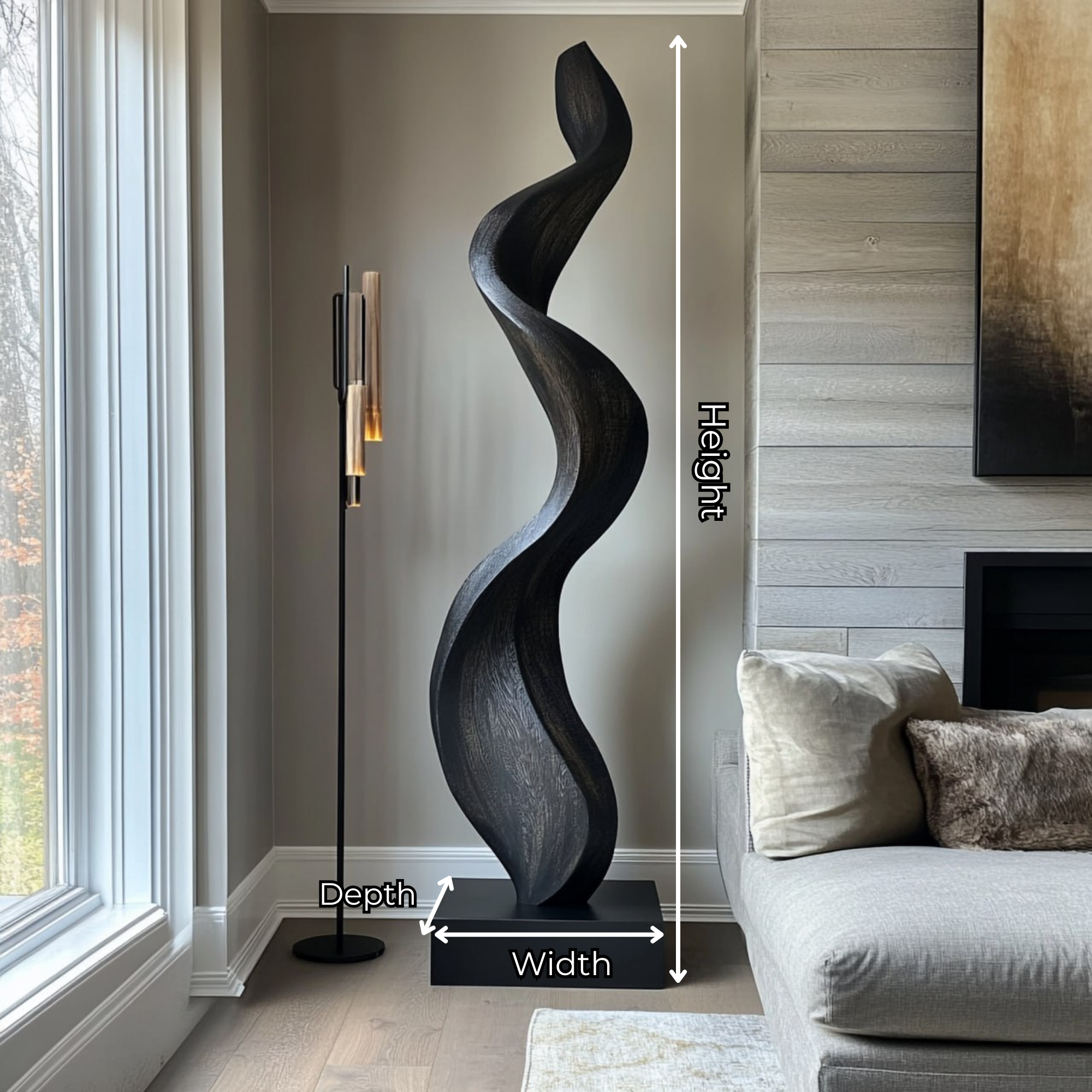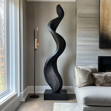 Designed with a modern, abstract aesthetic, this sculpture features a tall, fluid form inspired by natural movement and rhythm. Its graceful lines and upward flow create a calm sense of harmony, making it a captivating focal point for refined interiors.