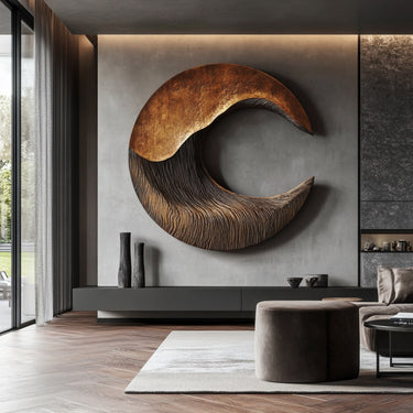 Well suited for living rooms, lounge areas, and contemporary interiors, this wall sculpture functions as an artistic focal point that complements minimalist and warm, nature-inspired design environments. Because solid wood is a natural material and each piece is finished individually, slight variations in grain, tone, and surface detail may occur.