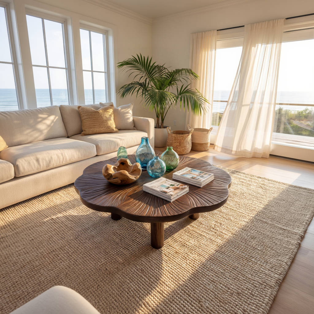 This sculptural round coffee table is designed to bring warmth, texture, and artistic character to the living space. Featuring a softly shaped silhouette, a low profile, and a richly carved top surface, the piece creates a bold focal point while maintaining a balanced and refined look.