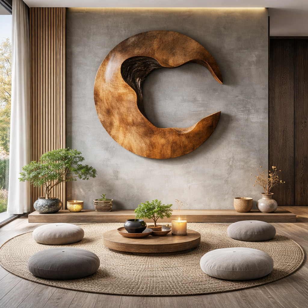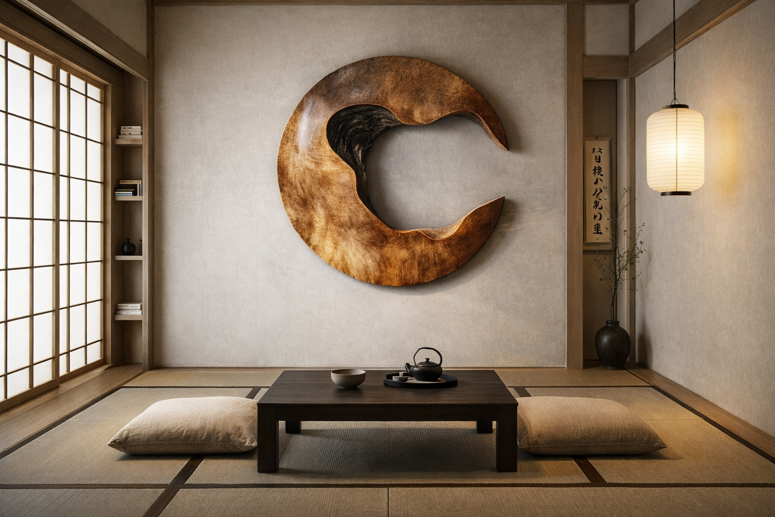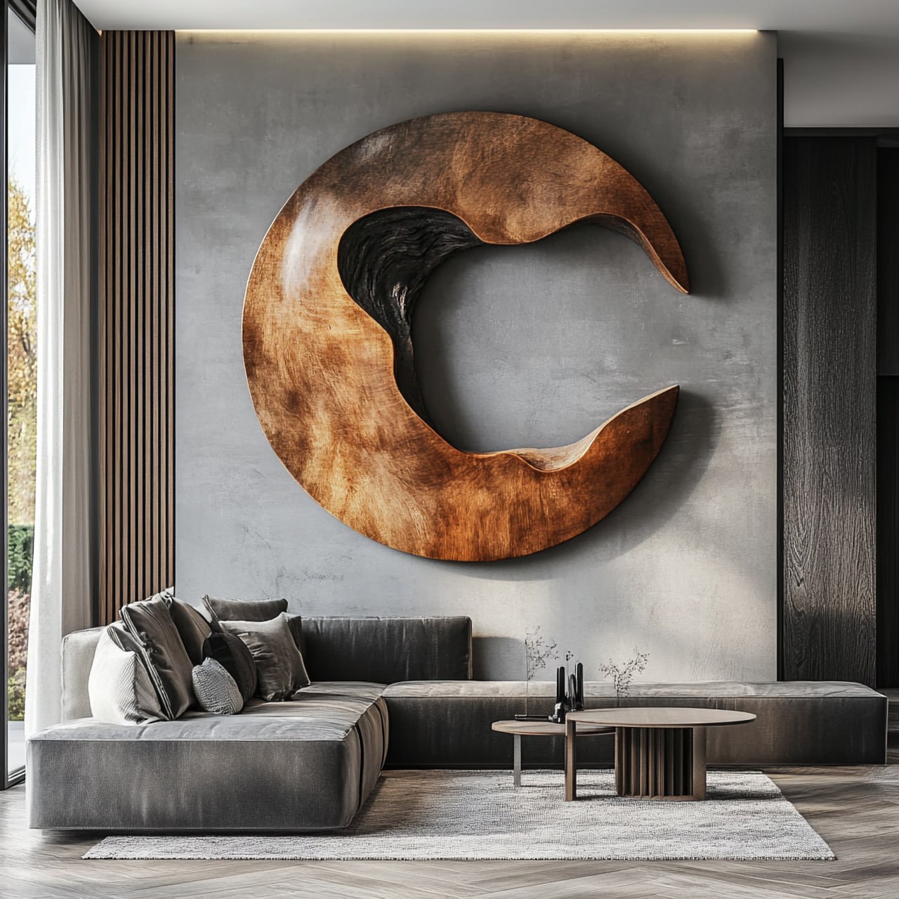 Designed with a modern organic aesthetic, this circular solid wood wall sculpture features a fluid crescent inspired profile with an open center. Smooth contours and sculpted depth create a dynamic focal point while keeping the overall look calm and balanced.