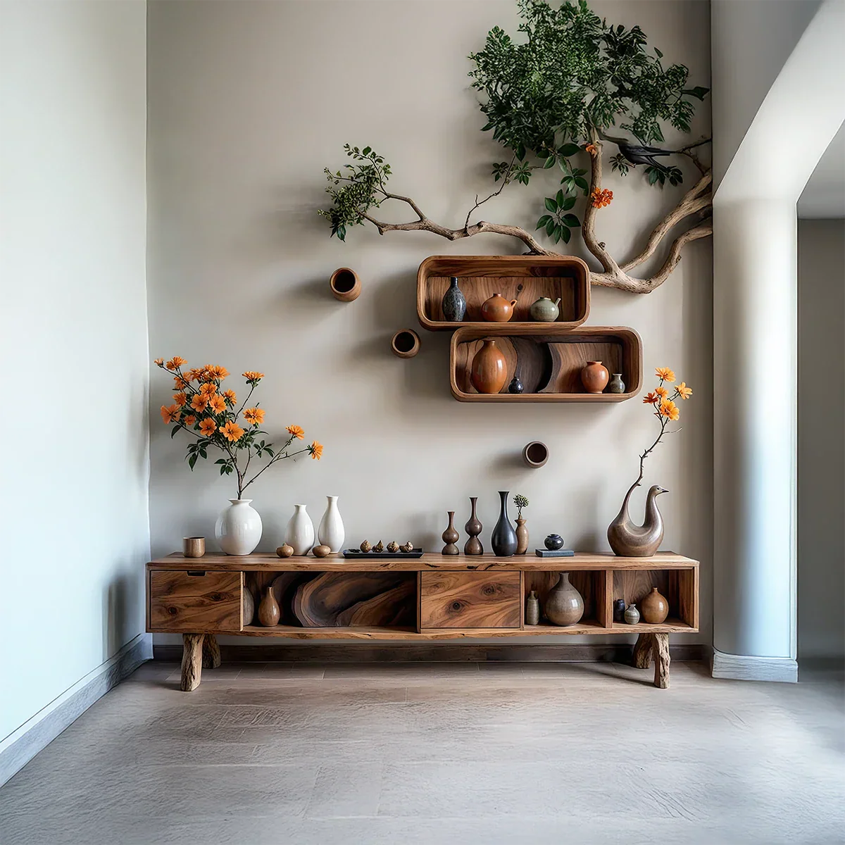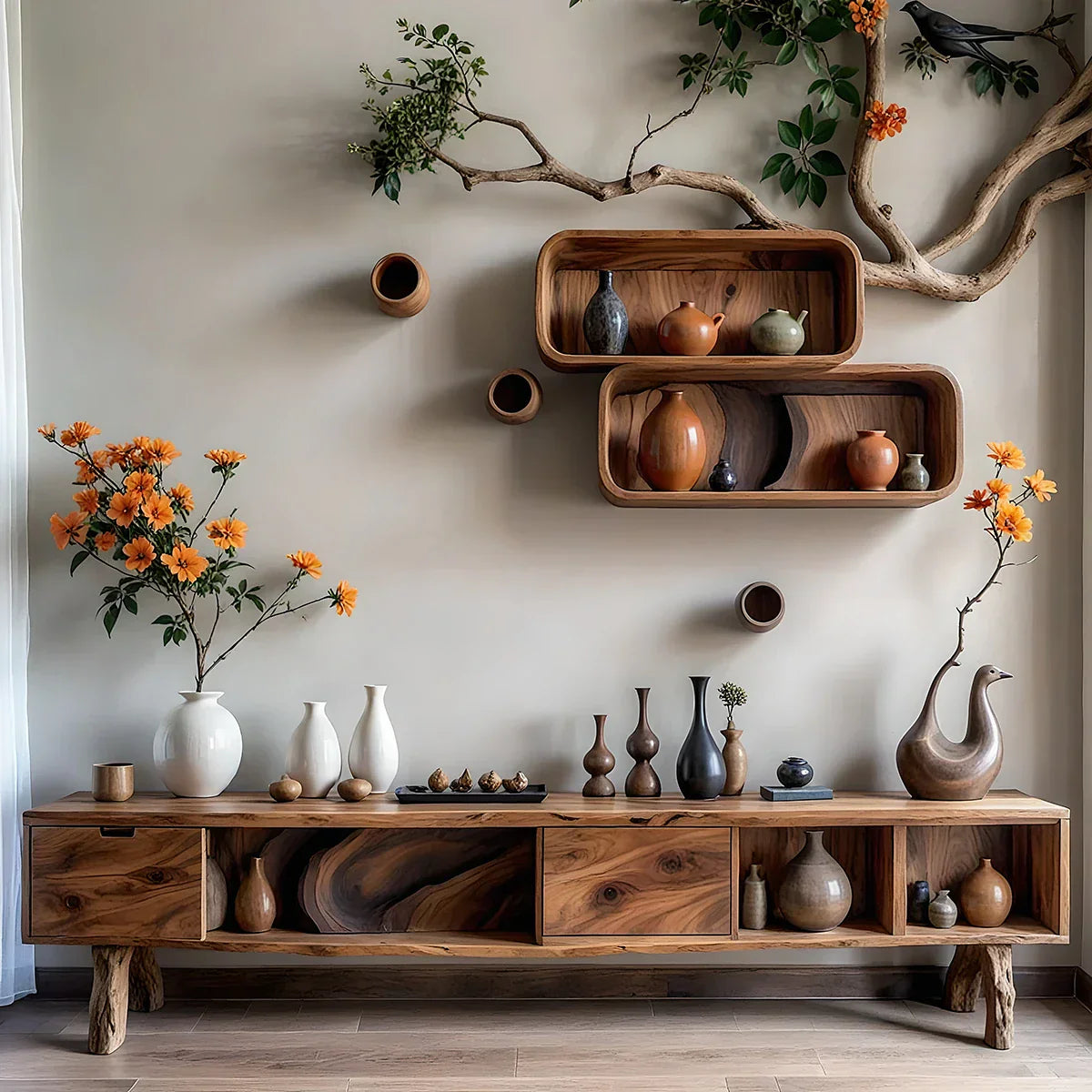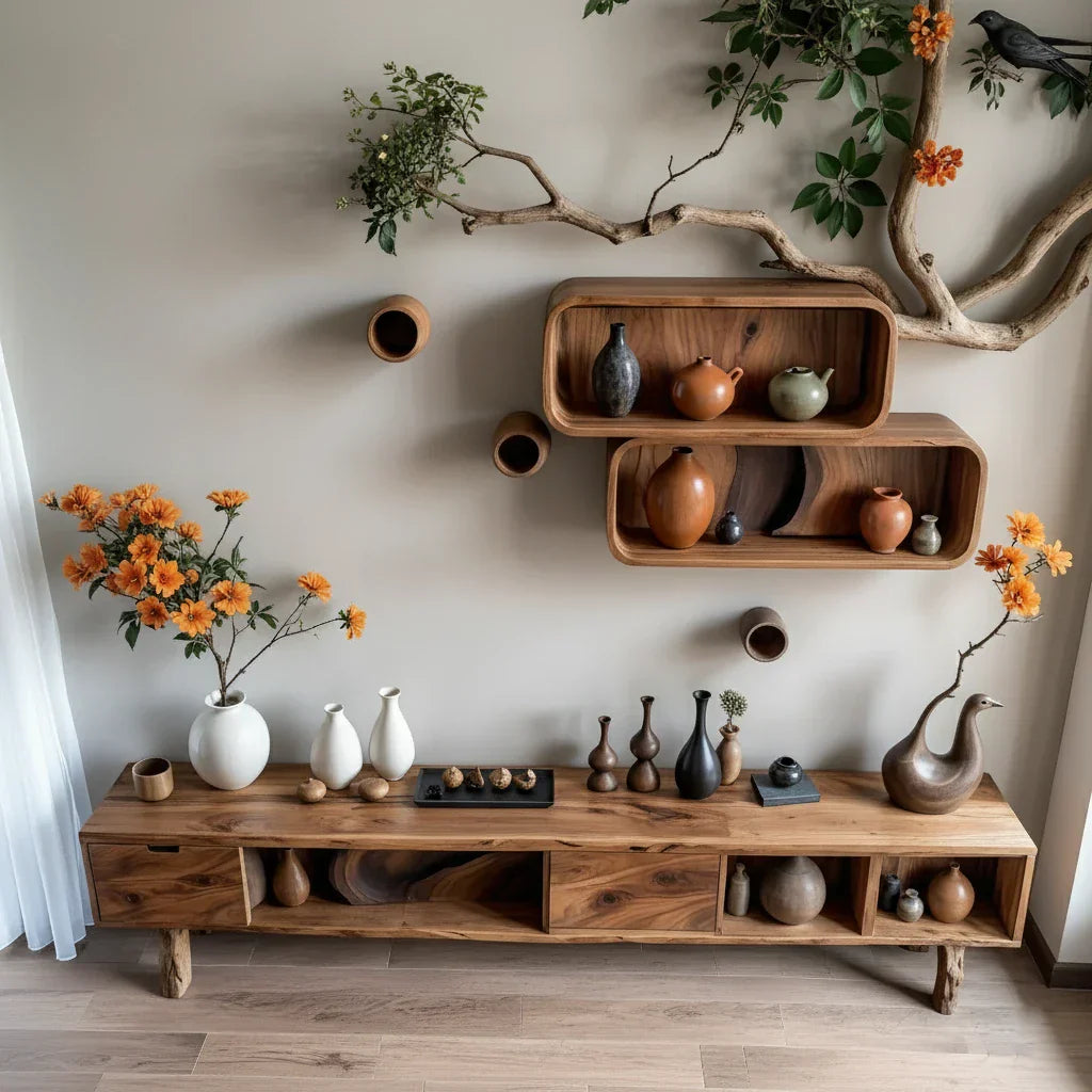 A functional storage piece with a sculptural presence, this console helps keep daily essentials organized while adding warm, understated character to your home.