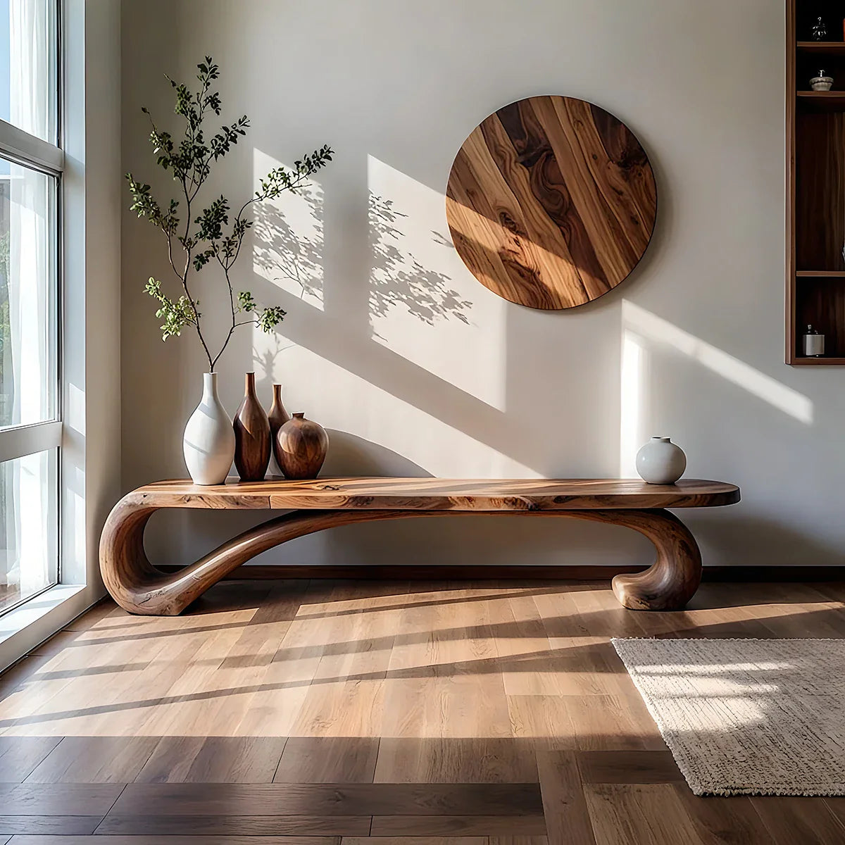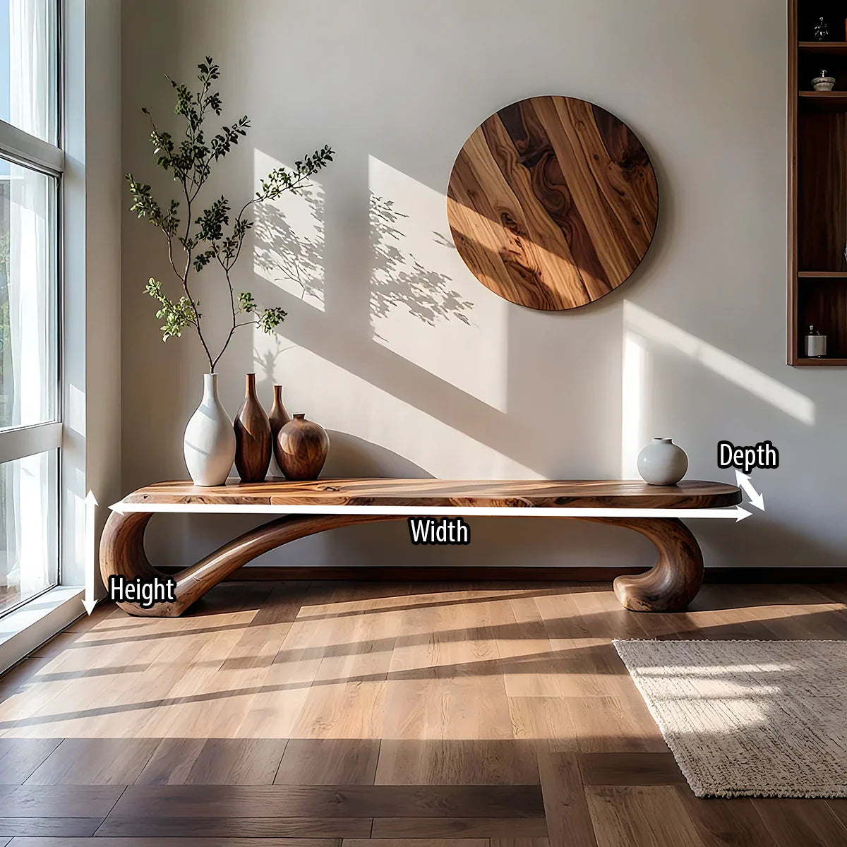 Organic Solid Wood Console Bench with S-Curve Base for Modern Home