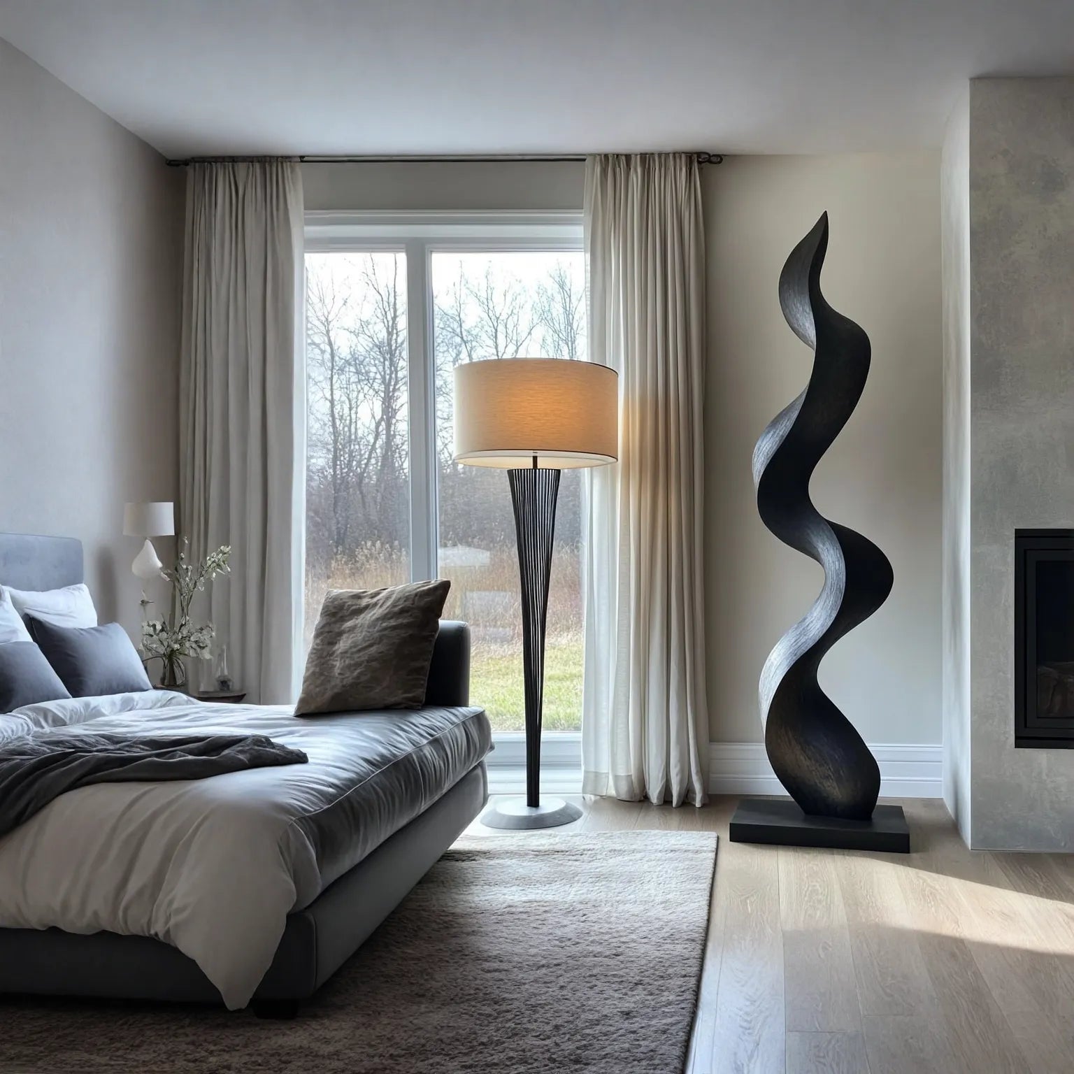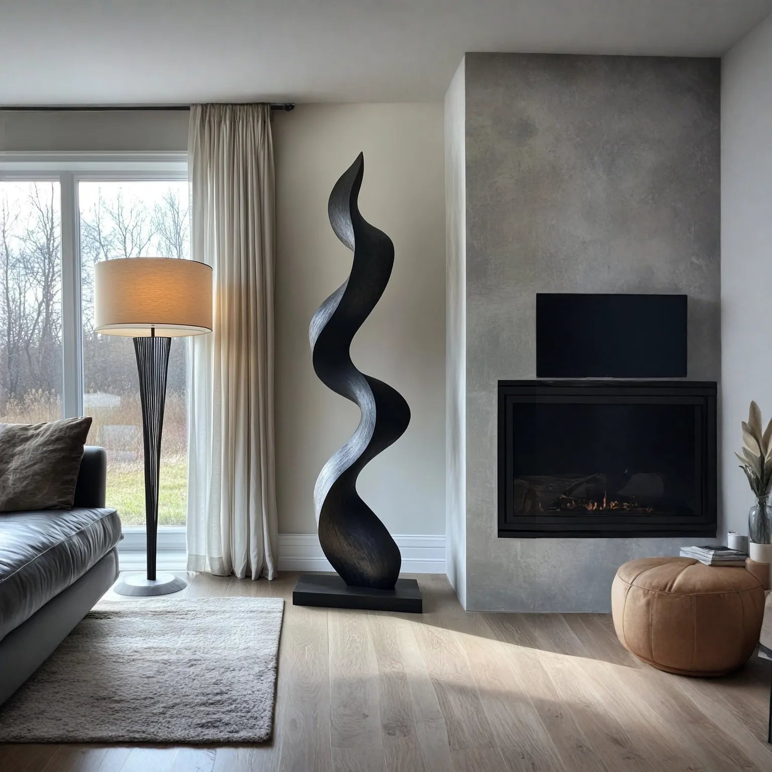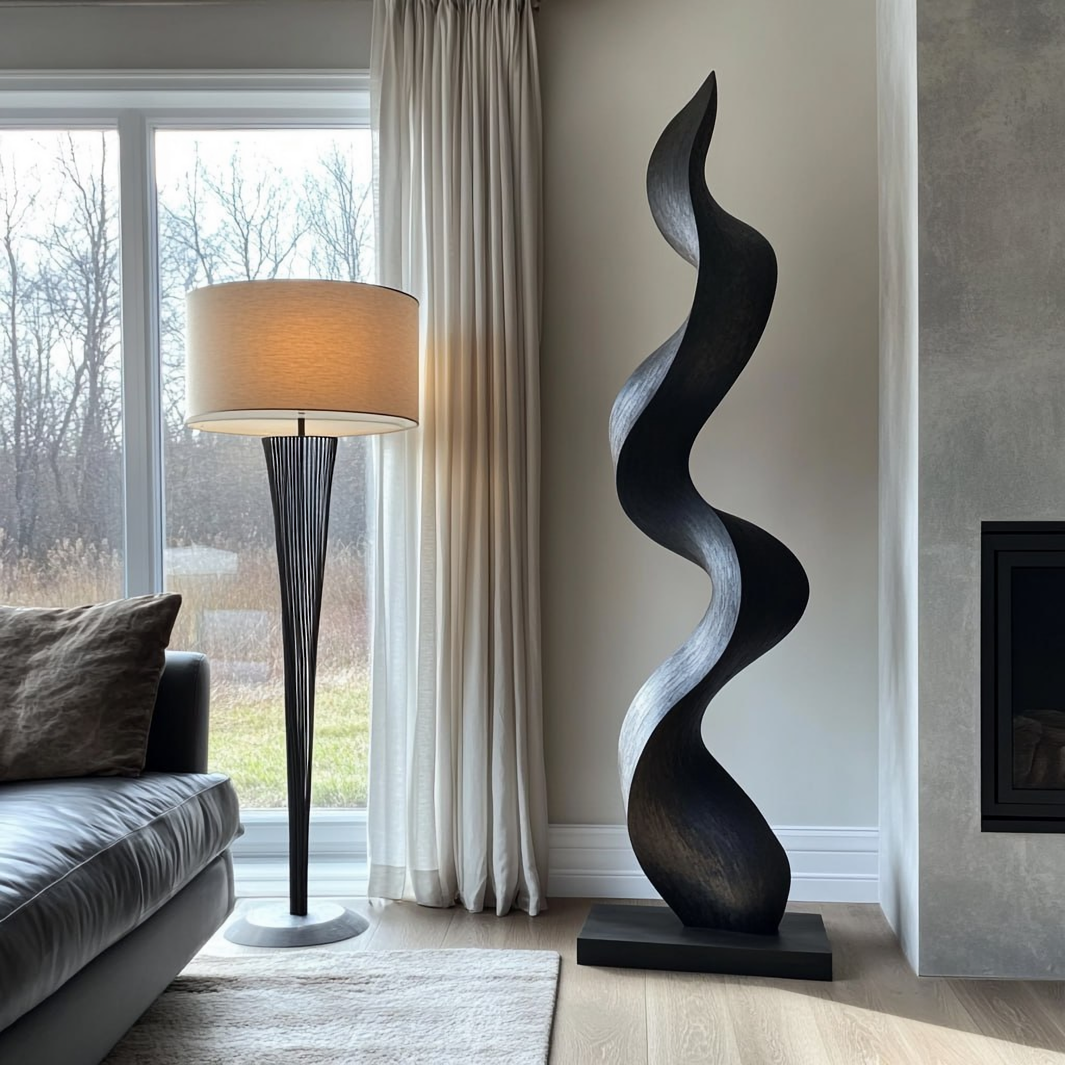A smooth satin finish enhances the natural grain and creates a warm, grounding presence. When placed near natural or directional lighting, the sculpture reveals subtle shifts in light and shadow across the surface, giving it a quietly dynamic, atmospheric quality throughout the day.