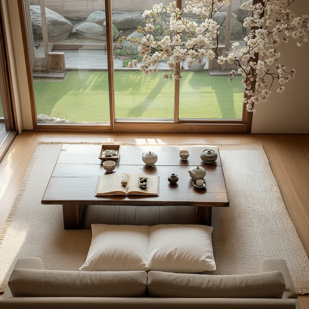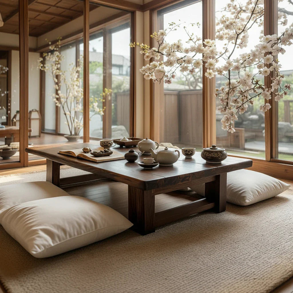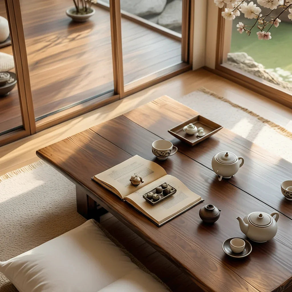 Solid-Wood Floor Tea Table for Japanese-Style Living Spaces
