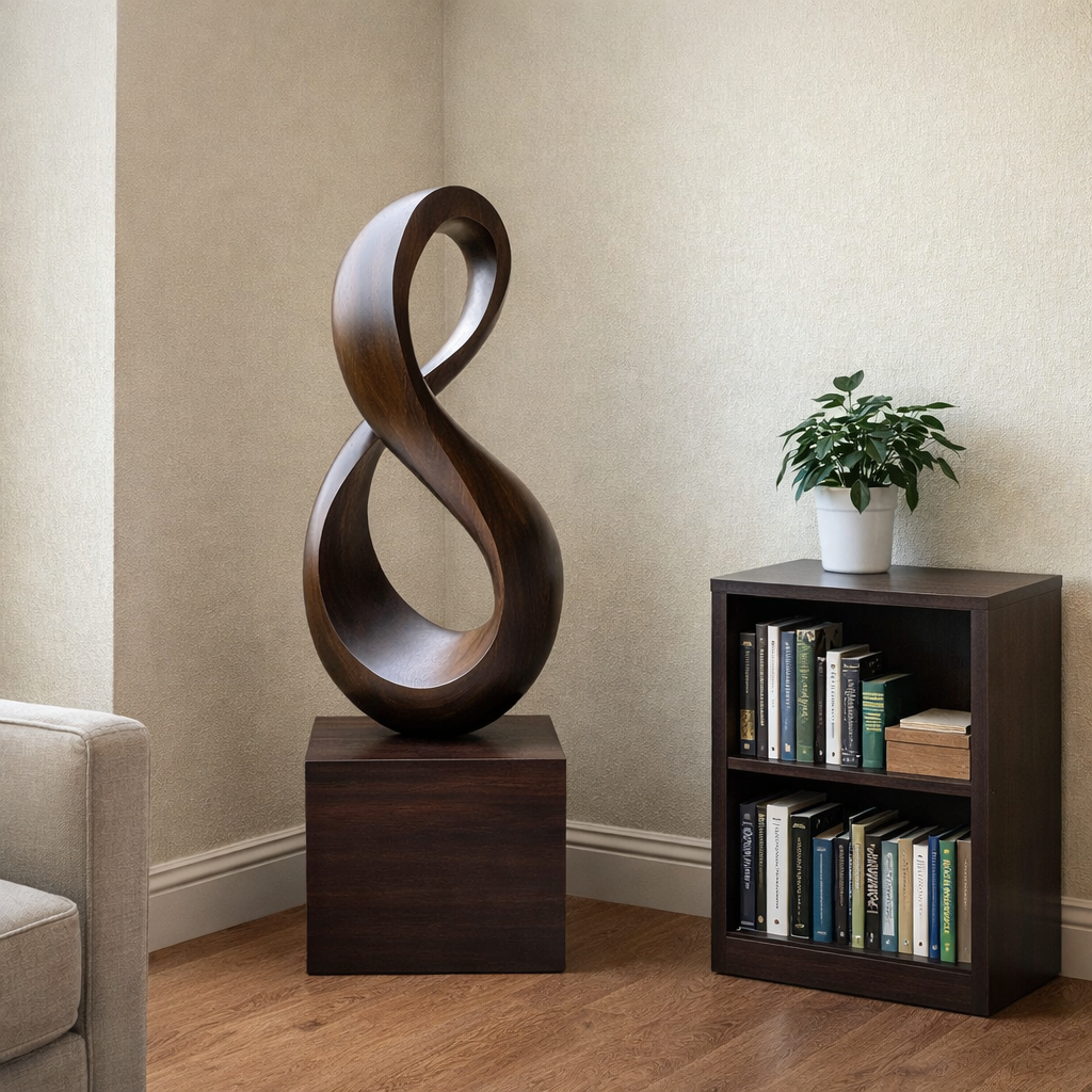 Tall Solid Wood Infinity Loop Sculpture with Plinth for Modern Spaces